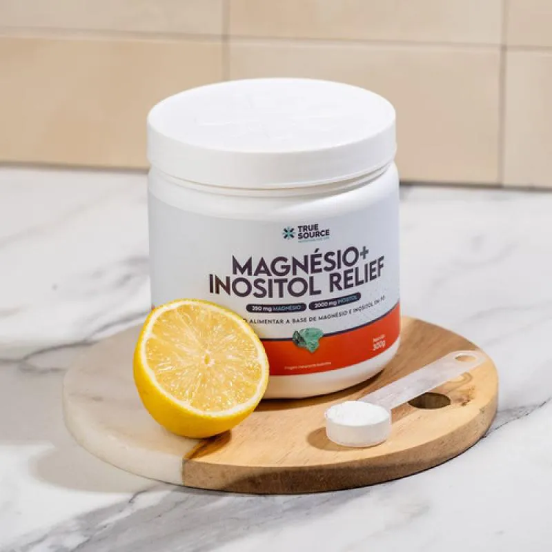 O Magnésio + Inositol Relief 1.0 da True Source é um suplemento em pó que combina dois nutrientes essenciais para o bem-estar mental e corporal: o magnésio na forma de bisglicinato e o inositol. A versão Lemonade (sabor limão) oferece uma experiência cítrica e refrescante, mantendo uma fórmula clean-label, livre de glúten, lactose e açúcar. A marca posiciona este produto como uma solução para auxiliar o equilíbrio emocional, a qualidade do sono, a função neuromuscular e o metabolismo energético.Composição / Ingredientes