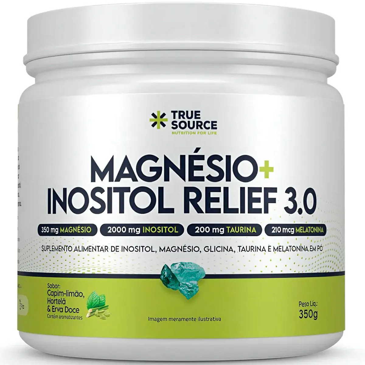 True Magnésio + Inositol Relief 3.0 – True Source (350 g | Sabor Capim-Limão, Hortelã e Erva-Doce) O que é?