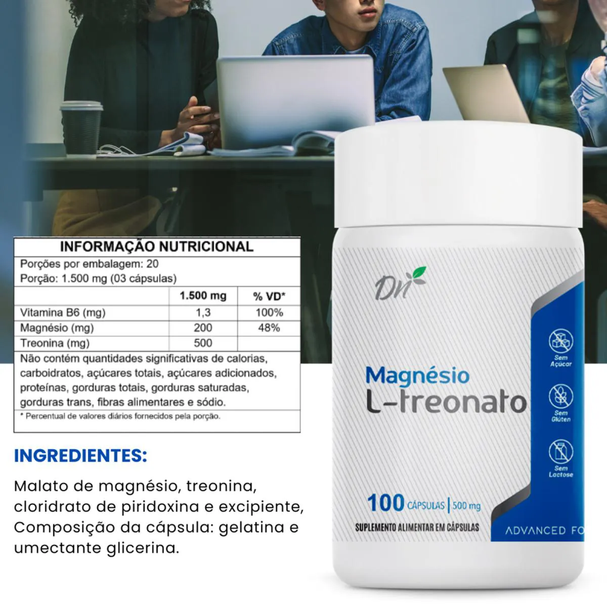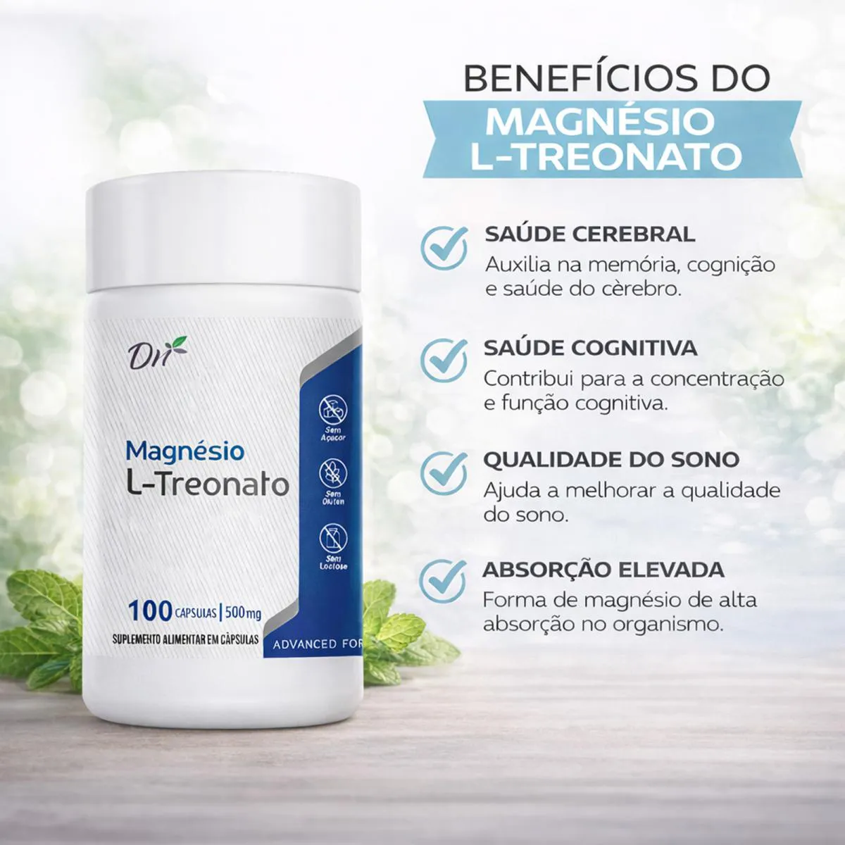 Magnésio L-Treonato 100 Cápsulas Saúde Treonato