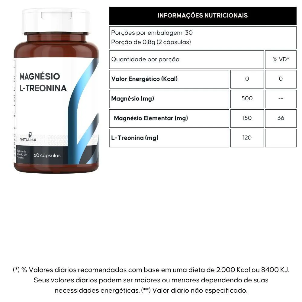 - Contém magnésio e L-treonina.