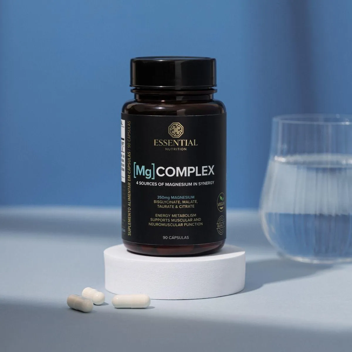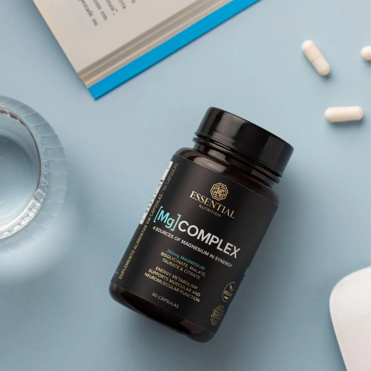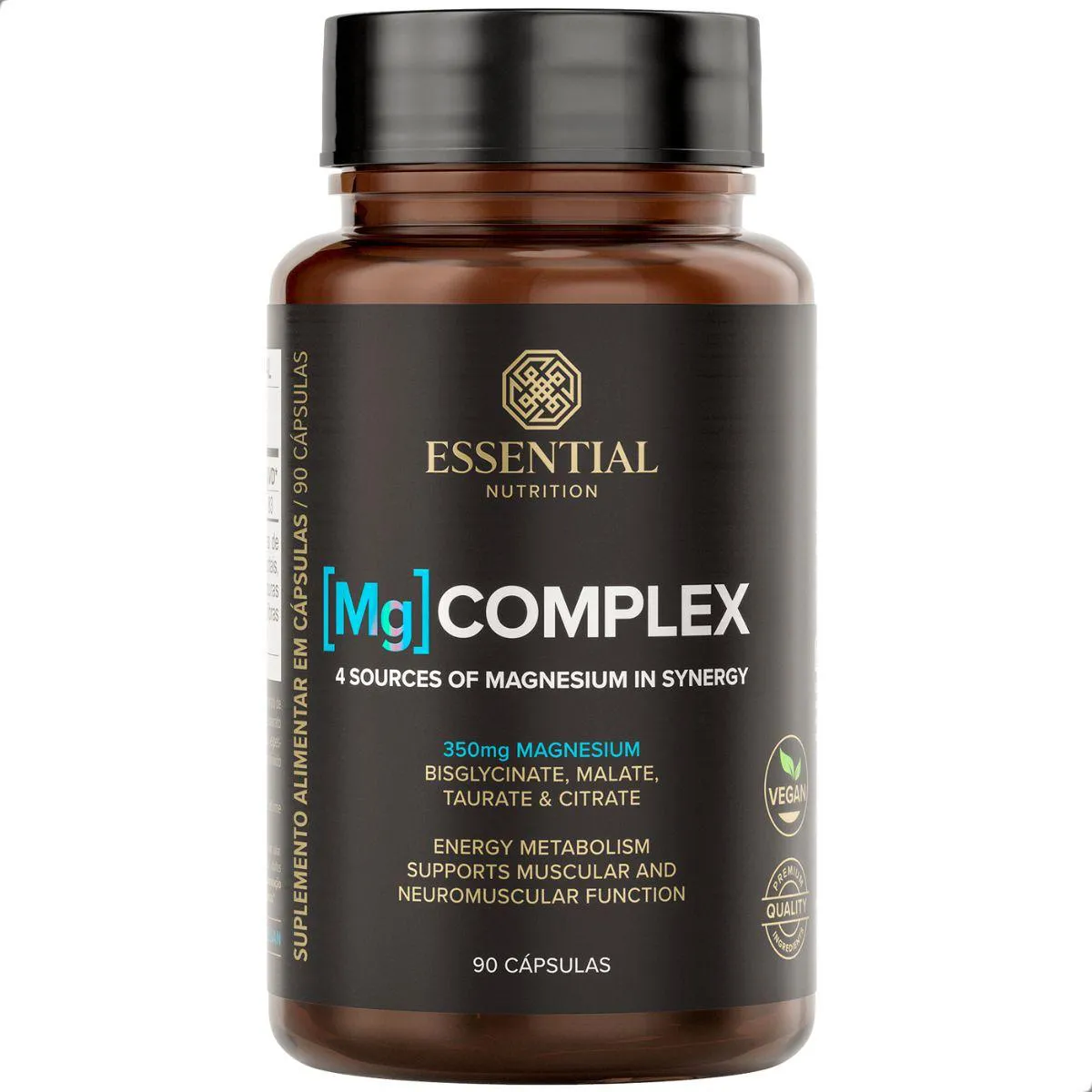 Magnésio Mg Complex Vegano Premium da Essential Nutrition contém 90 cápsulas reunindo diferentes formas de magnésio para diversificar a absorção. Voltado a quem busca apoio mineral em um único produto, este complexo oferece praticidade no consumo diário.