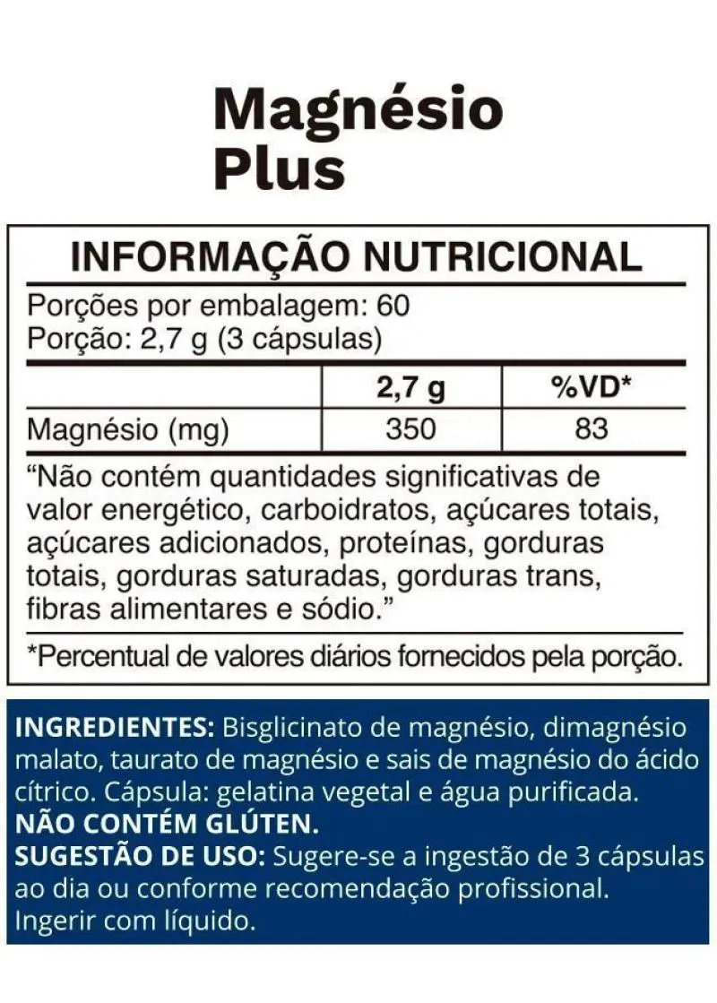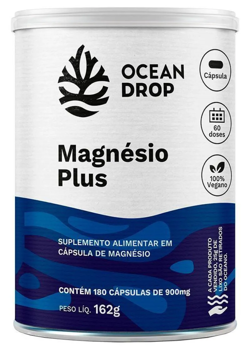 O suplemento Magnésio Plus da Ocean Drop combina quatro fontes de magnésio de alta absorção pelo organismo: bisglicinato de magnésio, dimagnésio malato, taurato de magnésio e citrato de magnésio, totalizando 350 mg do mineral elementar. O magnésio é o mineral mais abundante do corpo humano e é encontrado principalmente nos ossos, músculos e outros tecidos. O formato quelado é o padrão mais alto na suplementação mineral, sendo altamente absorvível pelo nosso corpo. Estudos, como Pardo et al. (2021), destacam que formas orgânicas, como o magnésio, são ainda mais biodisponíveis. Já a quelação com aminoácidos, presente no Magnésio Plus, melhora a absorção em até 3 vezes, fato que traz diversos benefícios para o organismo. O citrato de magnésio e o taurato de magnésio são formas de suplementação do mineral, cada uma com características diferentes. O primeiro é uma combinação de magnésio com ácido cítrico, oferecendo boa absorção e efeitos positivos no sistema digestivo. Estudos, como o de Lindberg et al. (1990), destacam sua eficácia na promoção da biodisponibilidade de magnésio. Por outro lado, o taurato de magnésio é uma combinação de magnésio com o aminoácido taurina, reconhecido por seus benefícios cardiovasculares e neuromusculares. Pesquisas, como a de Schaffer e Kim, 2018, indicam que ele beneficia na performance do exercício físico. Ambas as formas apresentam vantagens em termos de absorção e efeitos positivos no organismo. A diversidade na composição do Magnésio Plus, que inclui essas formas e mais outras duas (bisglicinato de magnésio e dimagnésio malato), visa oferecer uma fórmula completa para atender diversas necessidades de saúde e bem-estar. O Magnésio auxilia no funcionamento neuromuscular e, baixos níveis desse mineral podem causar tendência a cãibras e contrações musculares involuntárias. Por isso, o magnésio quelato é apontado em estudos como um suplemento que pode ajudar a amenizar a frequência das cãibras musculares. A presença adequada de magnésio também auxilia no funcionamento muscular porque ajuda a regular os níveis de eletrólitos, como potássio e cálcio, que são importantes para a função muscular saudável. Além disso, o magnésio foi apontado em um estudo como elemento fundamental do processo de recuperação muscular, pois participa na síntese de proteínas e na reparação dos tecidos musculares. O magnésio desempenha diversas funções no sistema cardiovascular. Estudos revelam que esse mineral contribui para a regulação do ritmo cardíaco devido à sua capacidade de auxiliar no transporte de íons de cálcio e potássio, que são essenciais para a contração e relaxamento do músculo cardíaco. Além disso, o consumo adequado de magnésio está associado à manutenção da pressão arterial, especialmente em indivíduos com hipertensão, conforme um estudo de revisão aponta. De acordo com um estudo de revisão publicado na revista Nutrients, o magnésio ajuda a regular os neurotransmissores responsáveis pela promoção do relaxamento e redução do estresse. Isso pode ser útil no alívio dos sintomas de ansiedade. Além disso, o magnésio é conhecido também pela sua influência na qualidade do sono. Um ensaio clínico observou que o consumo de um suplemento de magnésio quelato melhorou a qualidade do sono de idosos que sofriam com insônia. Esse efeito ressalta a importância do magnésio para o bem-estar mental e emocional. Existem alguns casos em que o risco carência de magnésio é maior, portanto a suplementação é geralmente indicada. Isso inclui: pessoas que sofrem de doenças gastrointestinais; depressão; diarreia crônica; utilizam terapia com inibidores da bomba de prótons; fazem uso de diuréticos; atletas, pessoas que sofrem de desequilíbrio eletrolítico ou alcoolismo. No entanto, tomar magnésio pode ser útil para uma variedade de pessoas, já que conforme estudos, a maior parte da população corre o risco de ter baixos níveis de magnésio. Antes de começar a tomar suplementos de magnésio, é importante conversar com um profissional de saúde para avaliar como estão os níveis desse mineral no sangue e adequar a dose de acordo com isso. Recomendação de uso: Sugere-se a ingestão de 3 cápsulas ao dia ou conforme recomendação profissional. Ingerir com líquido. Ingredientes: Bisglicinato de magnésio, dimagnésio malato, taurato de magnésio e sais de magnésio do ácido cítrico. Cápsula: gelatina vegetal e água purificada. Não contém glúten.