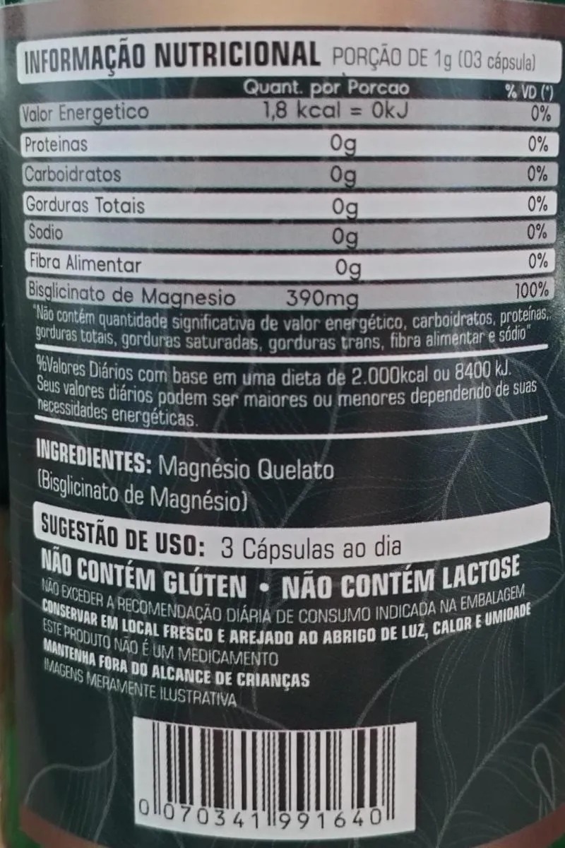 Magnésio Quelato 60 Cápsulas 500Mg