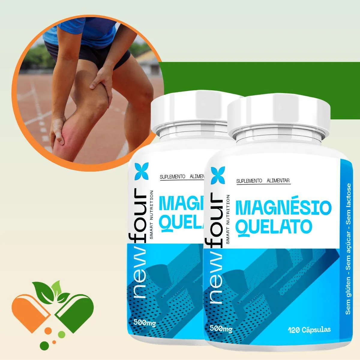 Magnésio Quelato Kit com 2 Potes com Total de 240 Capsulas
