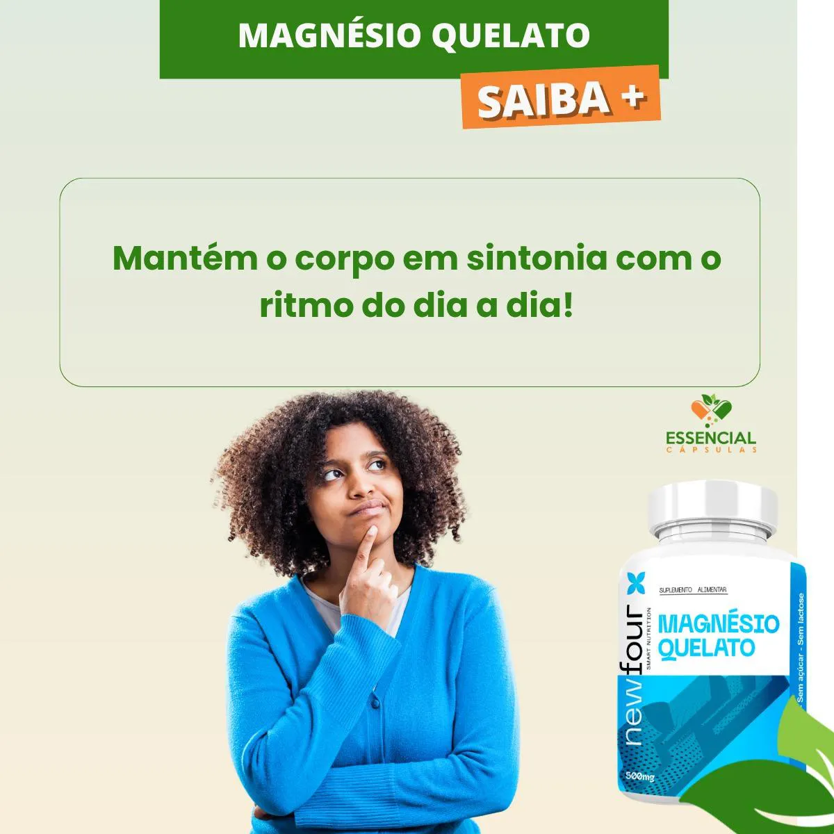 O Magnésio Quelato é um suplemento alimentar natural composto por Bisglicinato de Magnésio, desenvolvido para fornecer nutrientes complementares à alimentação. Seu objetivo é auxiliar pessoas saudáveis no aporte de magnésio, sendo popular entre indivíduos que buscam manter hábitos saudáveis, com maior absorção e praticidade.