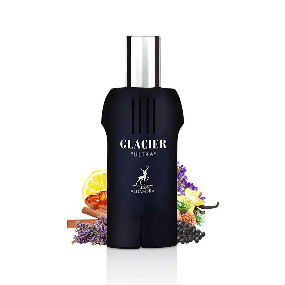 Maison Alhambra Glacier Ultra Eau de Parfum é uma fragrância oriental especiada vibrante e sofisticada, ideal para indivíduos dinâmicos que desejam uma presença energizante e cativante com um toque de elegância moderna. Lançada em 2023 pela casa árabe Maison Alhambra, esta essência unissex combina o frescor picante de canela, pimenta e limão na abertura, evoluindo para um coração aromático de lavanda, sálvia esclareia e patchouli, e ancorada em uma base quente e envolvente de baunilha, âmbar e cedro. Inspirada em fragrâncias intensas e versáteis, Glacier Ultra proporciona uma experiência olfativa tônica e sedutora, transformando o dia a dia em uma declaração de vitalidade e sofisticação, criando uma conexão emocional de confiança e distinção magnética.