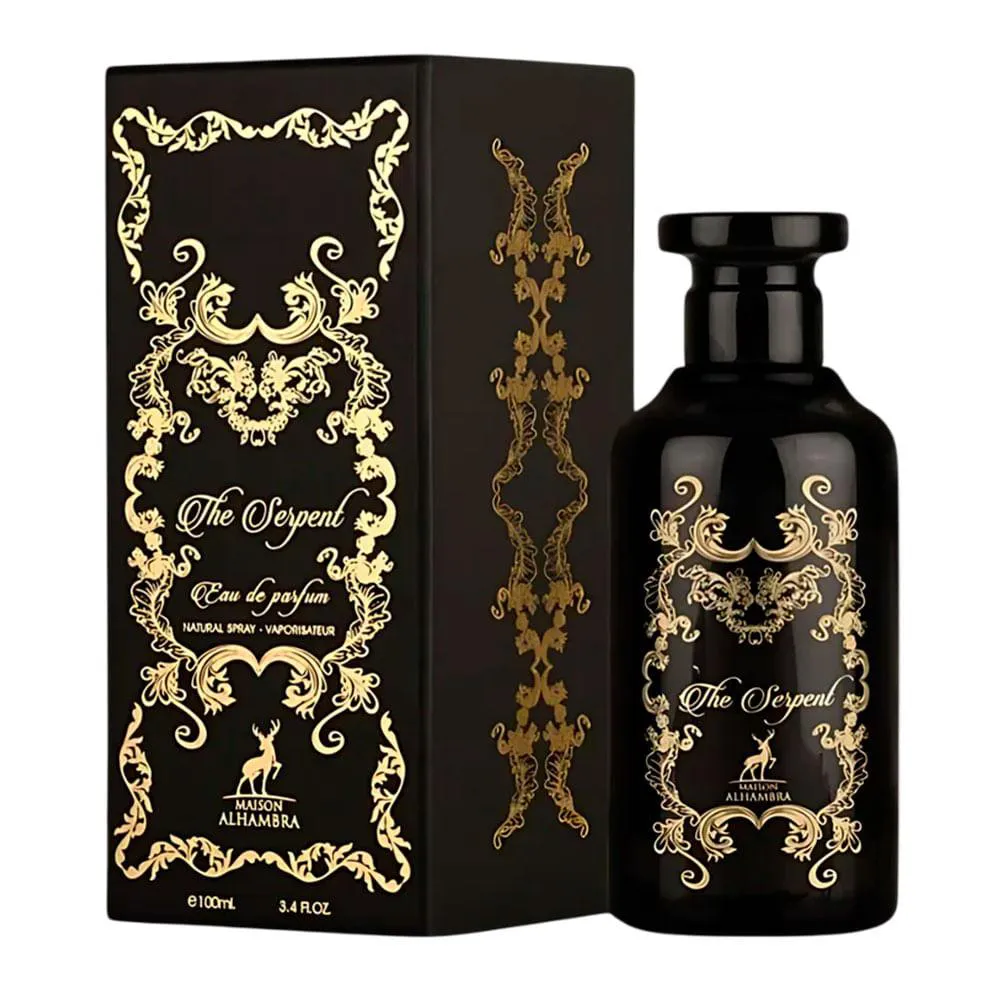Maison Alhambra The Serpent Eau de Parfum é uma fragrância oriental amadeirada ousada e mística, perfeita para indivíduos que desejam uma presença profunda e intrigante com um equilíbrio entre fumaça resinosa e calor terroso. Lançada em 2022 pela casa árabe Maison Alhambra, esta essência unissex abre com o aroma fumado e místico do oud (agarwood), evoluindo para um coração quente e especiado de açafrão, e ancorada em uma base rica de patchouli que adiciona profundidade e sensualidade. Ideal para quem busca um perfume que une mistério resinoso e sofisticação woody, The Serpent proporciona uma experiência olfativa equilibrada e duradoura, transformando o dia a dia em uma jornada de encanto e confiança, criando uma conexão emocional de ousadia e distinção magnética.