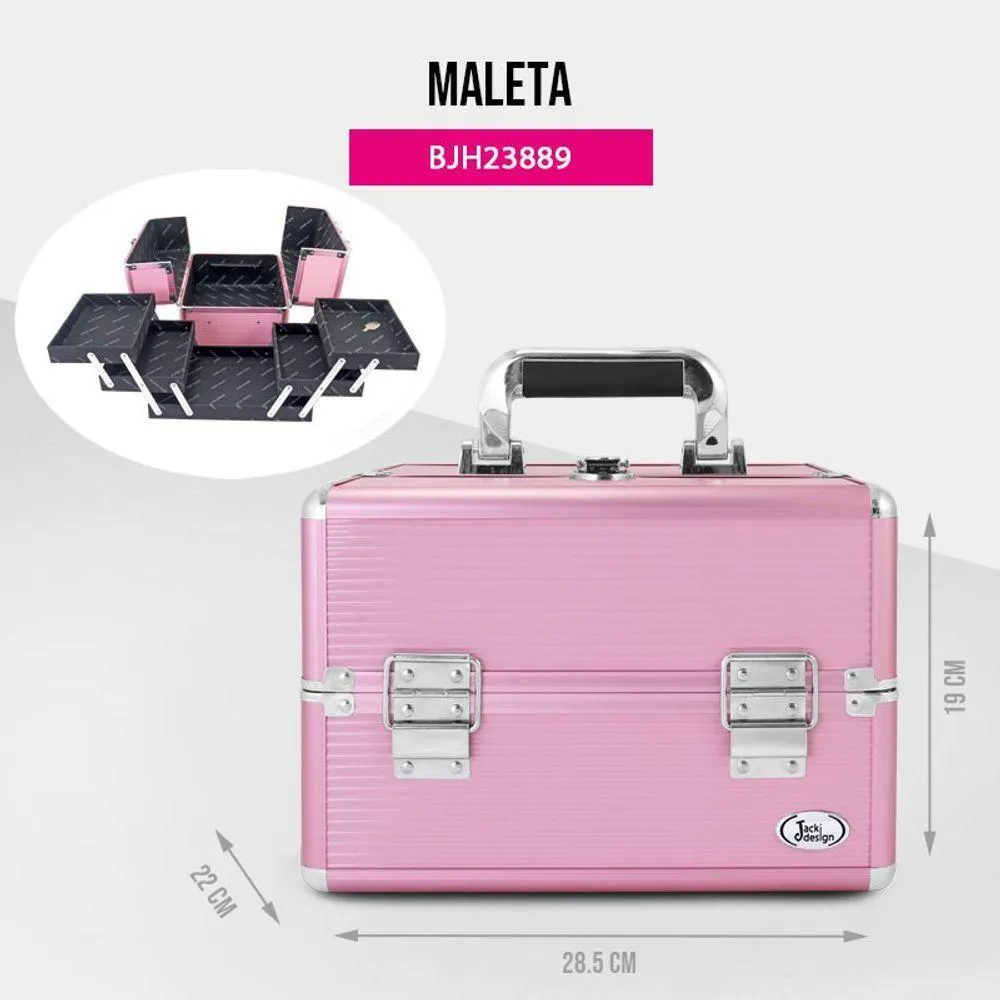 Maleta de Maquiagem - Rosa - Maletas queridinhas da Jacki Design voltaram!As maletas da Jacki Design são sinônimo de qualidade, incorporando estilo e funcionalidade. Feita com estrutura de alumínio de qualidade, material ABS resistente e cantos de aço reforçados. Possui amplo espaço interno, bandejas expansíveis e removíveis, projetadas para organizar e proteger todos os seus itens essenciais de beleza. A maleta é acompanhada por um mecanismo de travamento , reforçado por um par de chaves, garantindo que seus itens preciosos permaneçam protegidos. Seja você um experiente ou um amante de makes que busca praticidade, as suas makes merecem ser guardadas numa maleta da Jacki Design! CUIDADOS GERAIS: Limpe a maleta com um pano úmido. Caso necessário, use sabão neutro ou álcool para higienizar o . Não use material ou produto abrasivo.Medidas: Comprimento: x Largura: 22cm x Altura: 19cm