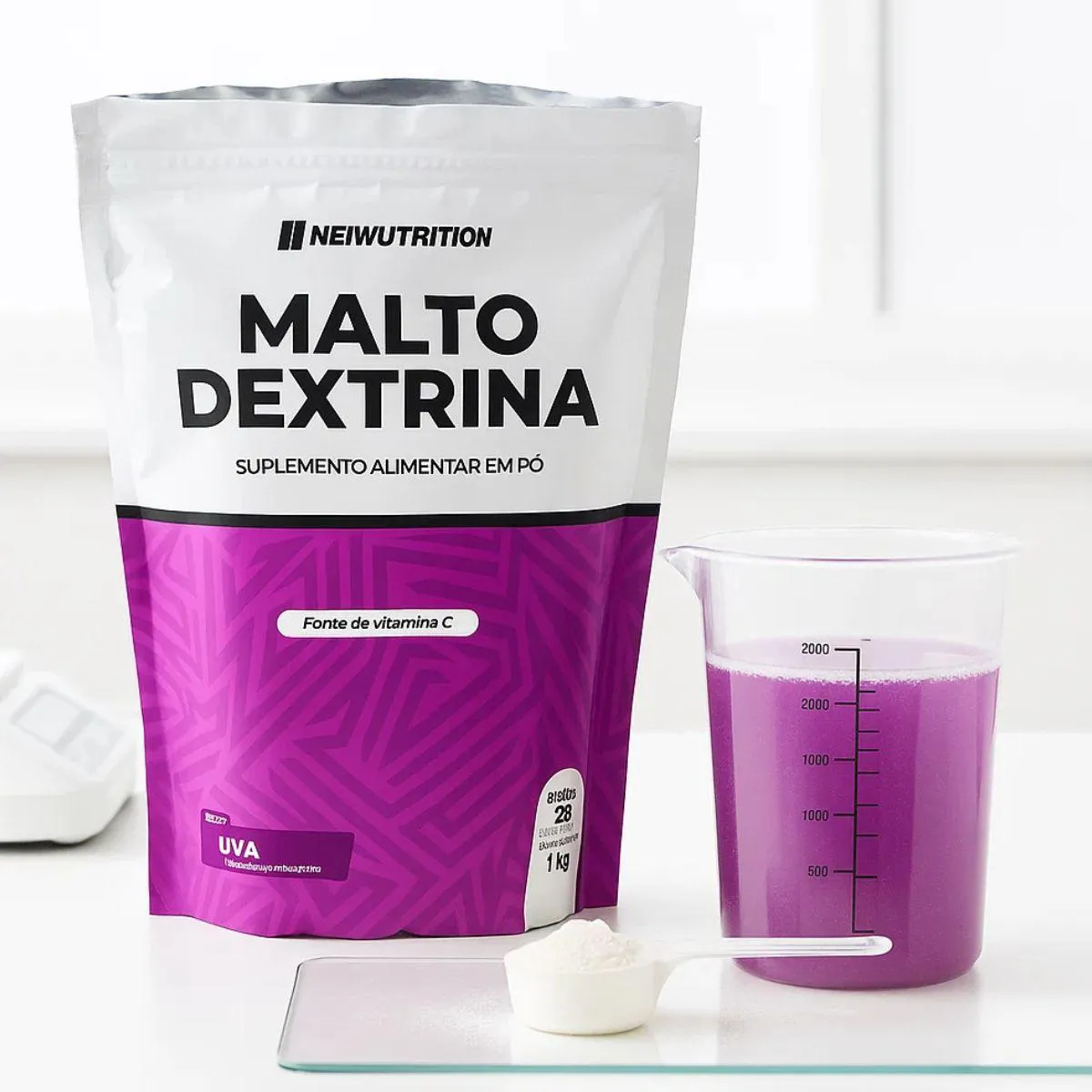 - Sabor neutro, fácil de misturar em bebidas.