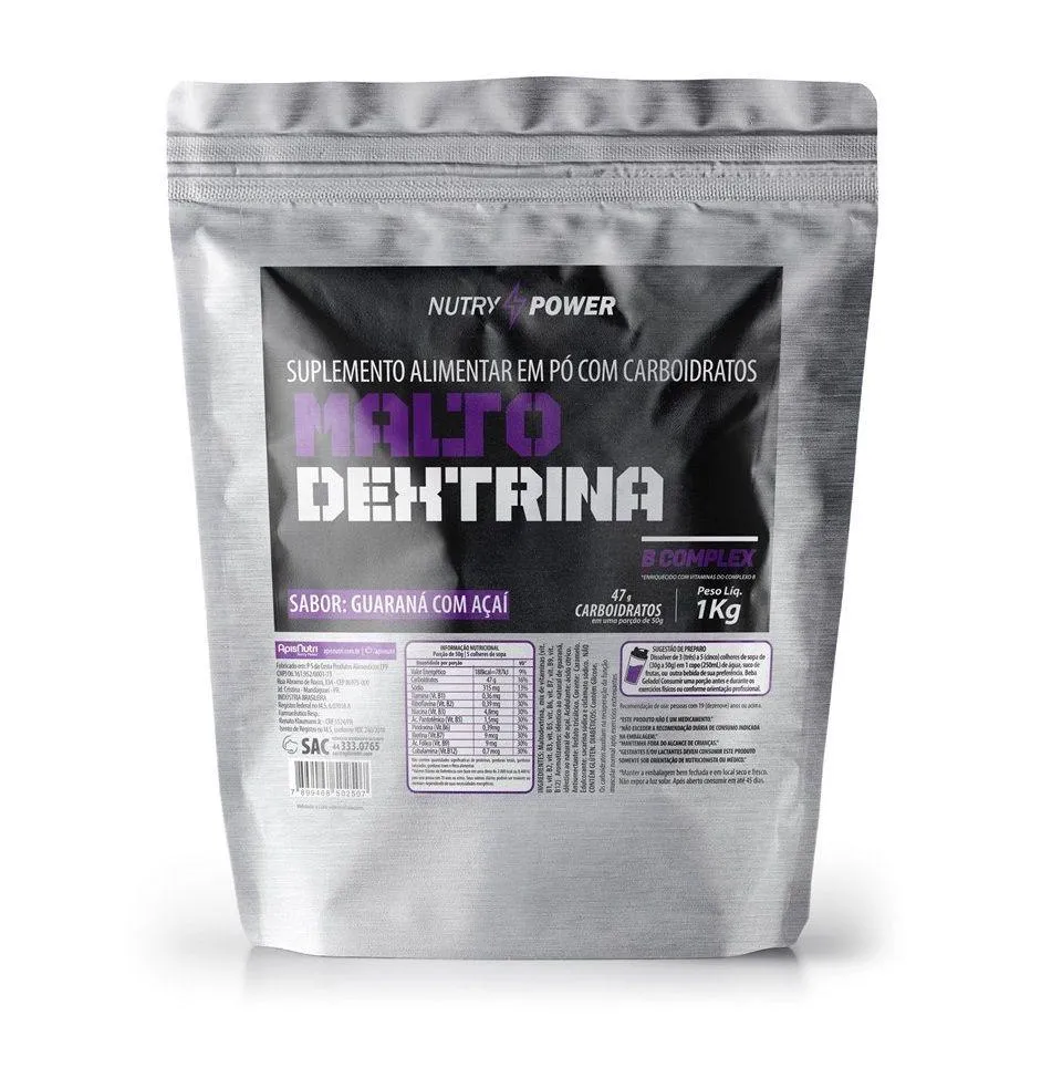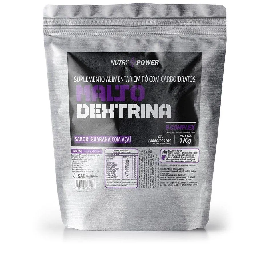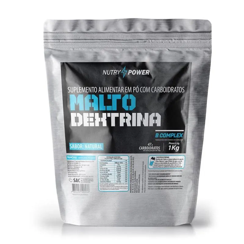Maltodextrina (1kg) - Nutry Power A maltodextrina é um carboidrato complexo proveniente do amido, normalmente de milho. Mas também pode ser encontrada em outros alimentos, como a mandioca. Ela é constituída por polímeros de glicose e, apesar de ser um carboidrato complexo, esses compostos de açúcar são mais facilmente absorvidos pelo organismo. Este suplemento é orientado para pessoas que praticam atividades físicas aeróbicas de alta intensidade e longa duração, como também para quem faz musculação. Quando consumida antes do treino, a maltodextrina irá garantir que o corpo tenha as quantidades corretas de glicose para a prática segura de exercícios, poupando as proteínas teciduais e evitando a hipoglicemia. Já ao ser ingerida após os treinos, a malto (como também é chamada) ajuda a repor o glicogênio muscular. Assim, evita-se que as proteínas sejam utilizadas como fontes energéticas, favorecendo a absorção desta substância pelos músculos e contribuindo para melhor recuperação muscular. Portanto, para os praticantes de atividades físicas, o consumo da maltodextrina pode ser mais interessante do que o de outras fontes de carboidratos. Afinal, sua absorção é mais rápida e seu consumo mais prático, pois é comercializada em pó ou em gel.Benefícios:* É uma ótima fonte de energia para o organismo;* Retarda os sintomas da fadiga;* Ajuda a evitar a hipoglicemia e a hiperinsulinemia;* Auxilia na absorção de aminoácidos;* Evita a perda de massa muscular;