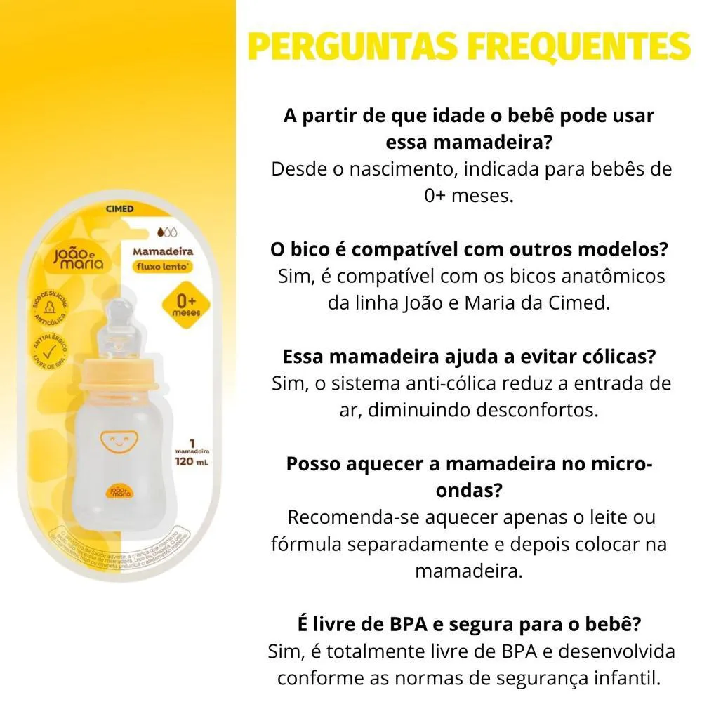 - Compatível com bicos anatômicos João e Maria da Cimed, permitindo adaptação conforme o crescimento do bebê.