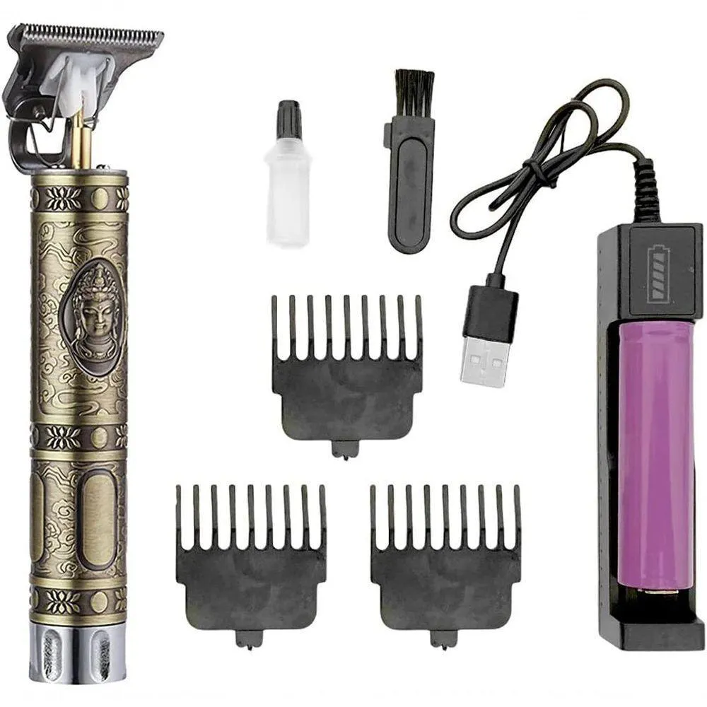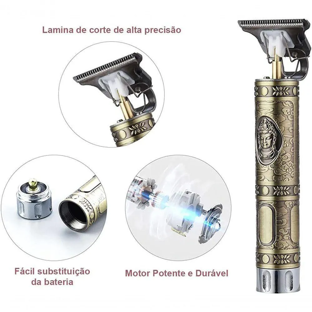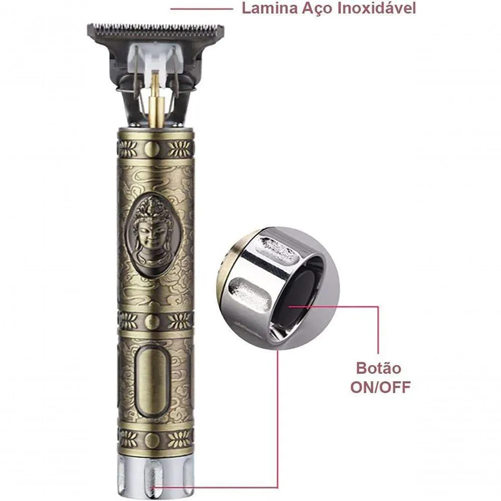 Produto com qualidade premium, motor com alta potência e durabilidade, além de uma lâmina eficaz e afiada. Este produto trabalha com uma potente bateria, a qual é recarregável e tem duração estimada de 120 minutos por carga. O kit tem seu próprio carregador, o qual está incluso no pacote, é de fácil uso e totalmente com entradas e conexões USB. Seu design e lâmina trazem conforto ao corte. Por ser uma máquina sem fio, dá maior liberdade ao , para que o trabalho e dos cortes sejam os mais precisos possíveis. Excelente item para acabamentos como barba, desenhos, disfarces, pezinhos e tudo o que sua criatividade e habilidade lhe permitirem. Itens inclusos: - 1 Máquina (Desenho Buda - Potência de 5w) - 1 Carregador USB - 1 Bateria Recarregável (aprox. 3h de recarga e 2h de uso) - 3 Pentes - 1 Escova para Limpeza - 1 Óleo Especificações: Marca: Hair Clipper Modelo: WS-T99 Tamanho: 14,5cm x 4cm Peso: 150 g