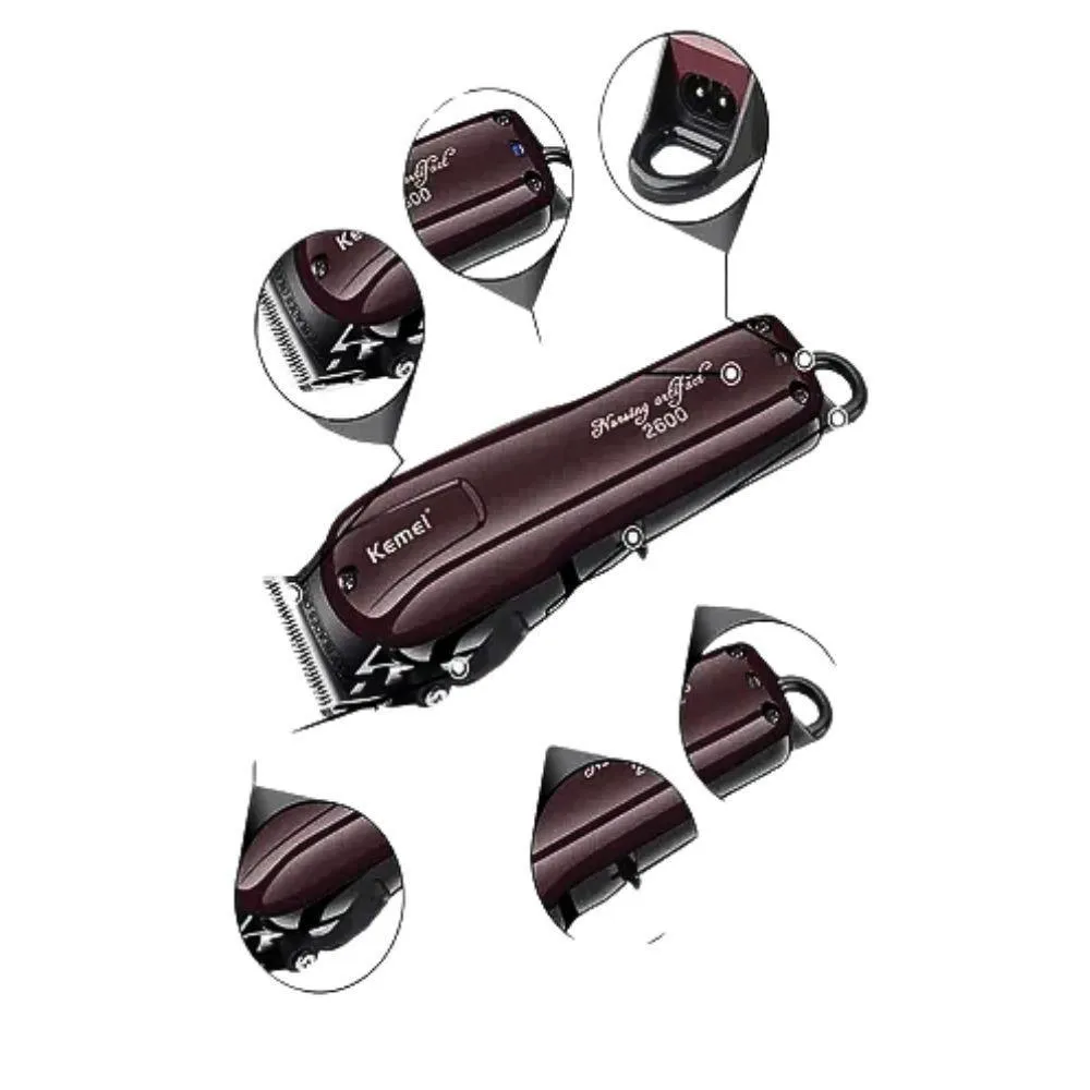 Sua chance de elevar o nível dos seus cortes chegou com a Máquina de Cortar Cabelo Sem Fio Recarregável Kemei KM-2600. A ferramenta essencial para cortes perfeitos e clientes satisfeitos.