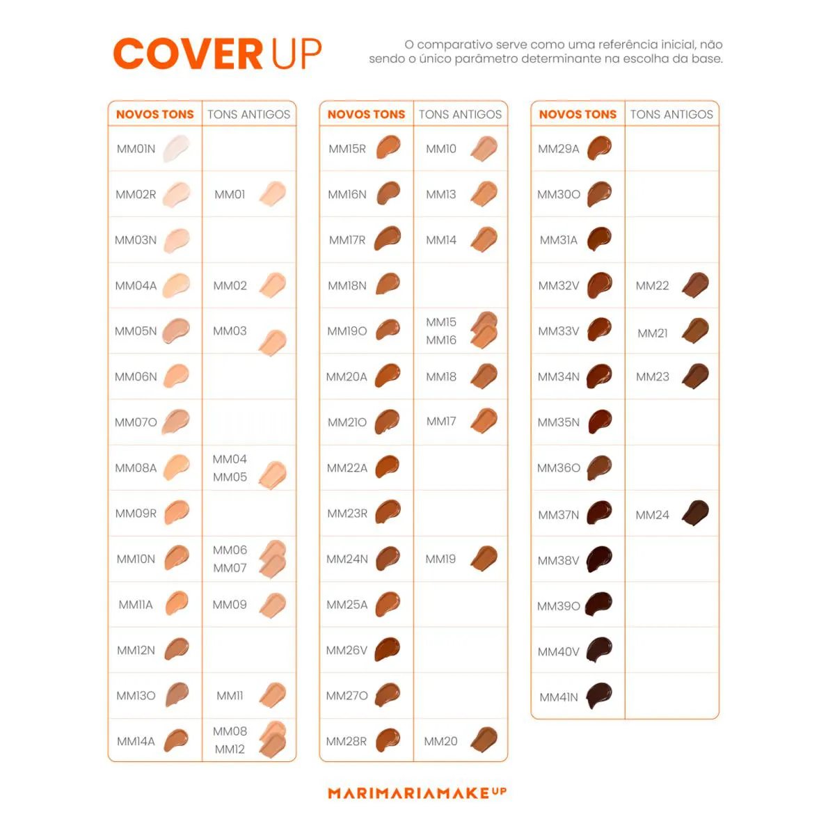 A base Mari Maria Cover Up deixa a pele aveludada e uniforme sem craquelar! É resistente à água e ao suor, oil free e não acumula nos poros. Sua fórmula possui secagem rápida e cobertura ajustável (de média à alta). Com pigmentos revestidos por aminoácidos para atenuar imperfeições da pele, a base uniformiza e disfarça marcas, manchas, cicatrizes e olheiras de forma natural com longa duração.
