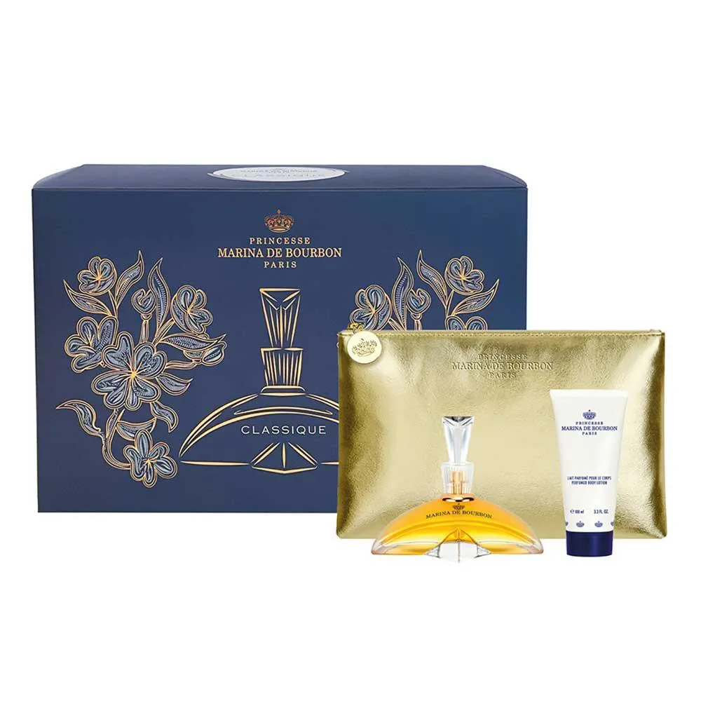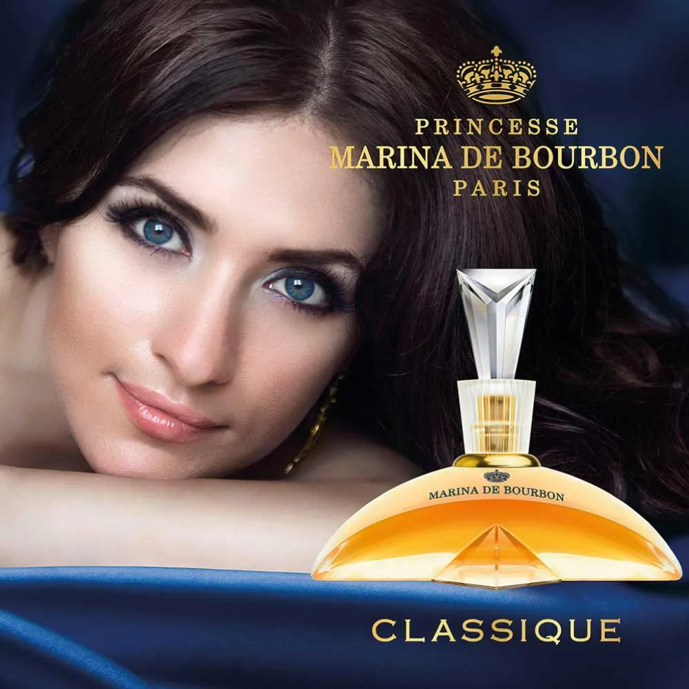 Lançado em 1995 pela própria princesa, o perfume feminino Classique Marina de Bourbon Eau de Parfum da marca Marina de Bourbon, antes de tudo, sinônimo de classe e elegância. Inspirada no perfume dos jardins do seu castelo, tem um aroma doce e ao mesmo tempo exótico. Para a mulher clássica, elegante e extremamente feminina.