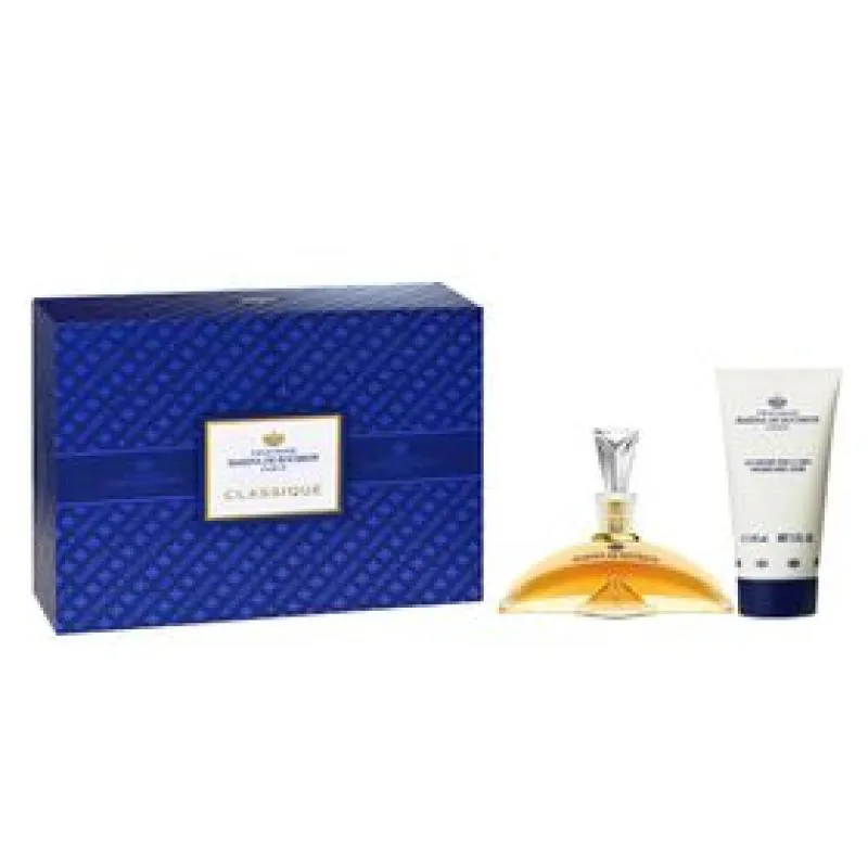 Conjunto feminino com perfume Classique e loção corporal Marina de Bourbon. Traz uma fragrância marcante e sofisticada, que combina com a mulher elegante, que carrega em si o espírito da realeza. A primeira fragrância de Princesse Marina de Bourbon.