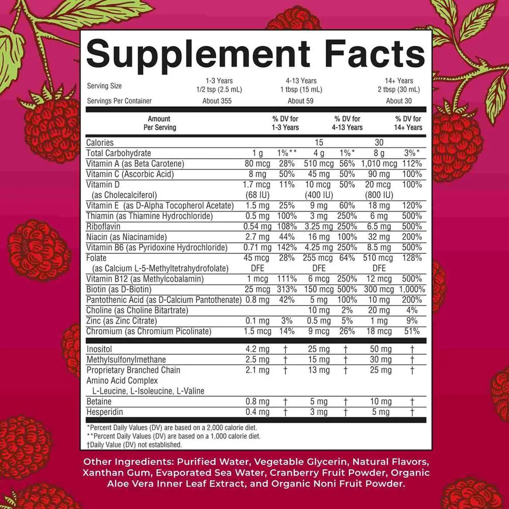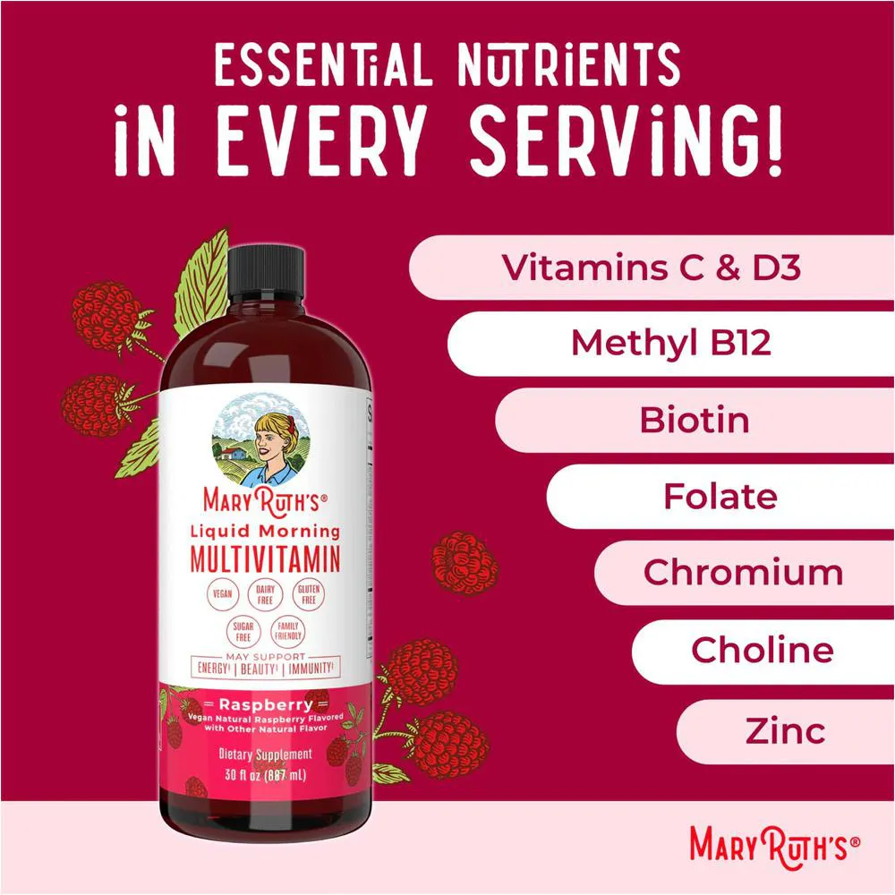 O Maryruths Multivitamínico Líquido é um suplemento vitamínico em formato líquido com sabor de framboesa, desenvolvido para fornecer vitaminas e minerais de forma prática e agradável. Serve para complementar a dieta diária de adultos, oferecendo uma alternativa fácil de tomar aos suplementos tradicionais em cápsula, podendo ser consumido puro ou misturado em bebidas, com o objetivo de auxiliar na ingestão de nutrientes essenciais de maneira simples e conveniente.