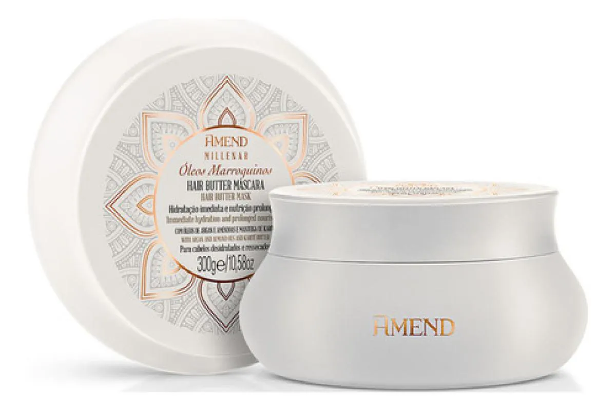 A Máscara Hair Butter Amend Millenar Óleos Marroquinos é um produto cosmético capilar desenvolvido para hidratação e nutrição profunda dos cabelos, formulado com óleos marroquinos, manteiga de Karité e ativo de Tamarindo. Sua composição especial visa tratar e recuperar a saúde dos fios.