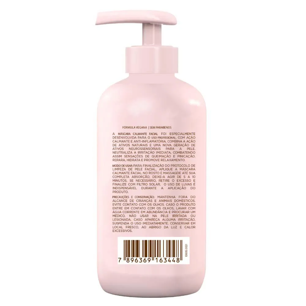 Para finalização do protocolo de limpeza de pele Facial, aplique a Máscara Calmante Facial no rosto e massageie até sua completa absorção. Deixe-a agir de 5 a 10 minutos. Se necessário retire o excesso e finalize com filtro solar. O uso de luvas é indispensável durante a aplicação do produto.