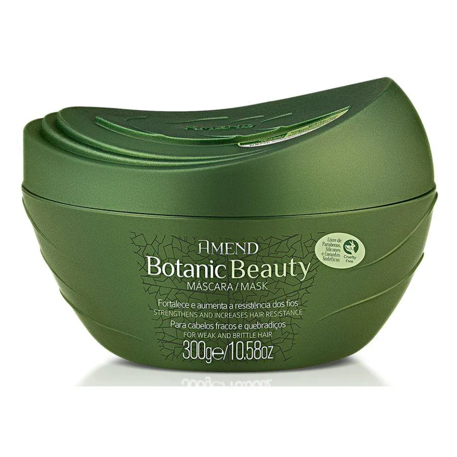 máscara Amend Botanic Beauty Óleo de Monoi e Extratos de Alecrim e Gengibrefortalece e repara os fios. Com delicada fórmula vegana, possui 94% dos ingredientes de origem natural. Enriquecida com óleo de monói e extratos de alecrim e gengibre, proporciona aos fios brilho, sedosidade, força e vitalidade, reduzindo a quebra e reforçando sua estrutura interna. Os ativos botânicos deixam os fios mais fortes e resistentes para crescerem saudáveis e bonitos. Dermatologicamente testado. Embalagem 100% verde biodegradável.