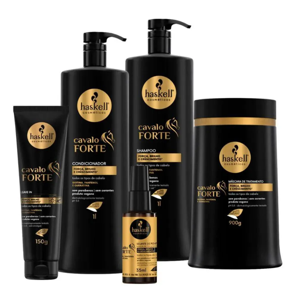 A máscara capilar Haskell Cavalo Forte 900g foi desenvolvida para promover fortalecimento profundo, estímulo ao crescimento saudável e recuperação da resistência da fibra capilar. Sua ação intensiva devolve vitalidade, brilho e corpo aos fios fragilizados, sendo ideal tanto para tratamentos regulares quanto para rotinas de recuperação mais intensa.A fórmula concentrada com o Complexo Cavalo Forte combina biotina, pantenol e queratina, atuando diretamente no interior da fibra capilar. A biotina auxilia no fortalecimento e no crescimento saudável dos fios, o pantenol garante hidratação profunda e melhora a elasticidade, enquanto a queratina contribui para a reconstrução da estrutura capilar, reduzindo a quebra e aumentando a resistência. O resultado é um cabelo mais encorpado, macio e visivelmente saudável.Com textura cremosa e alto poder de tratamento, a máscara proporciona hidratação intensa, nutrição e reconstrução em uma única aplicação, ajudando a prevenir danos, melhorar a maleabilidade e devolver o brilho natural. Indicada para todos os tipos de cabelo, especialmente fios fracos, quebradiços, danificados ou em fase de crescimento.