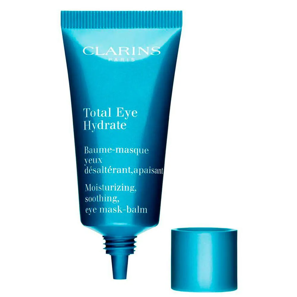 máscara em bálsamo hidratante para área dos olhos. Clarins Total Eye Hydrate 20ml revitaliza e acalma instantaneamente os olhos cansados para um efeito refrescante e descansado.