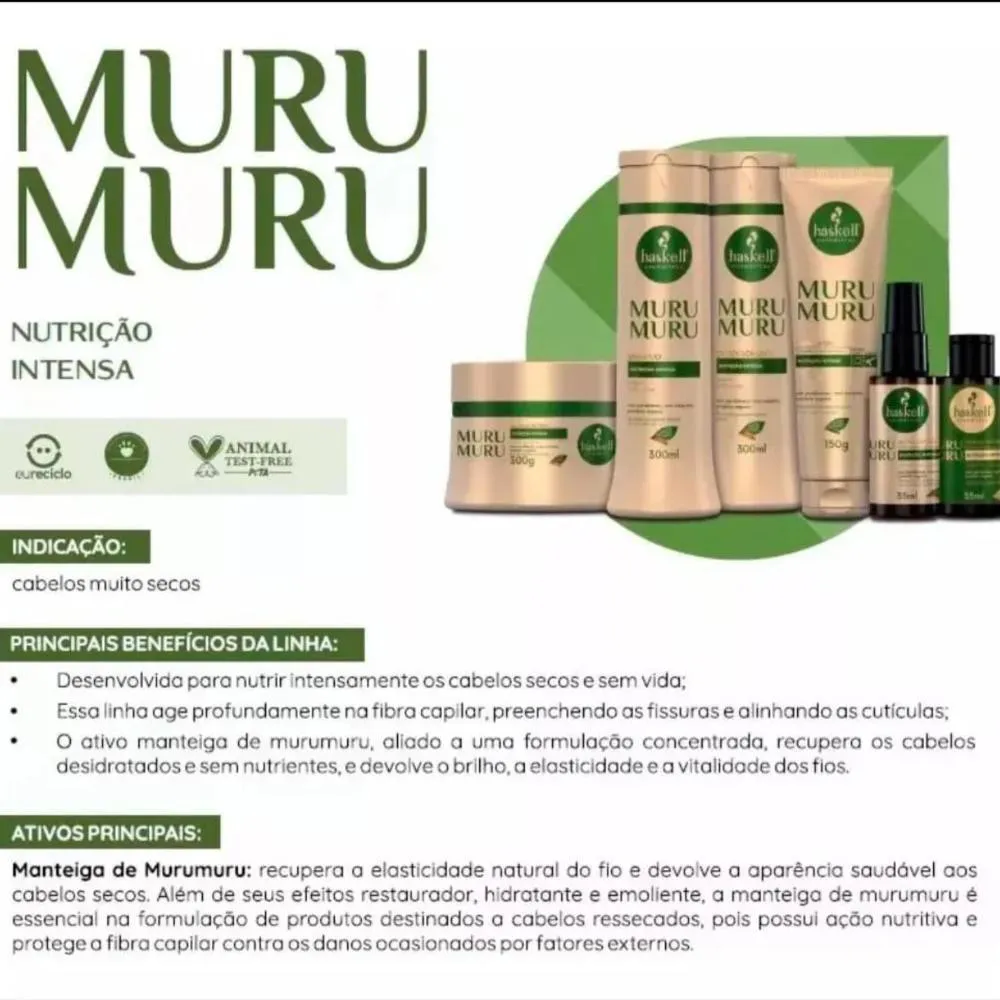 A máscara capilar Haskell Murumuru 900g foi desenvolvida para oferecer nutrição intensa e reposição lipídica profunda aos cabelos muito secos, opacos ou sem vida. Sua fórmula altamente emoliente atua no interior da fibra capilar, devolvendo maciez, flexibilidade e brilho desde a primeira aplicação.Enriquecida com manteiga de murumuru, ativo reconhecido pelo alto poder nutritivo, a máscara ajuda a preencher áreas ressecadas, alinhar as cutículas e reduzir o aspecto áspero dos fios. A ação condicionante prolongada melhora a textura do cabelo, controla o frizz e proporciona toque sedoso, sem pesar.Indicada especialmente para cabelos secos, ressecados ou quimicamente tratados, a máscara Murumuru entrega tratamento profundo com alto rendimento, sendo ideal tanto para uso profissional em salão quanto para cuidados intensivos em casa.