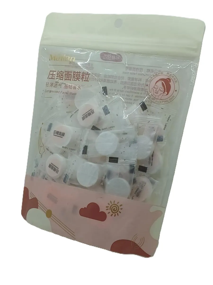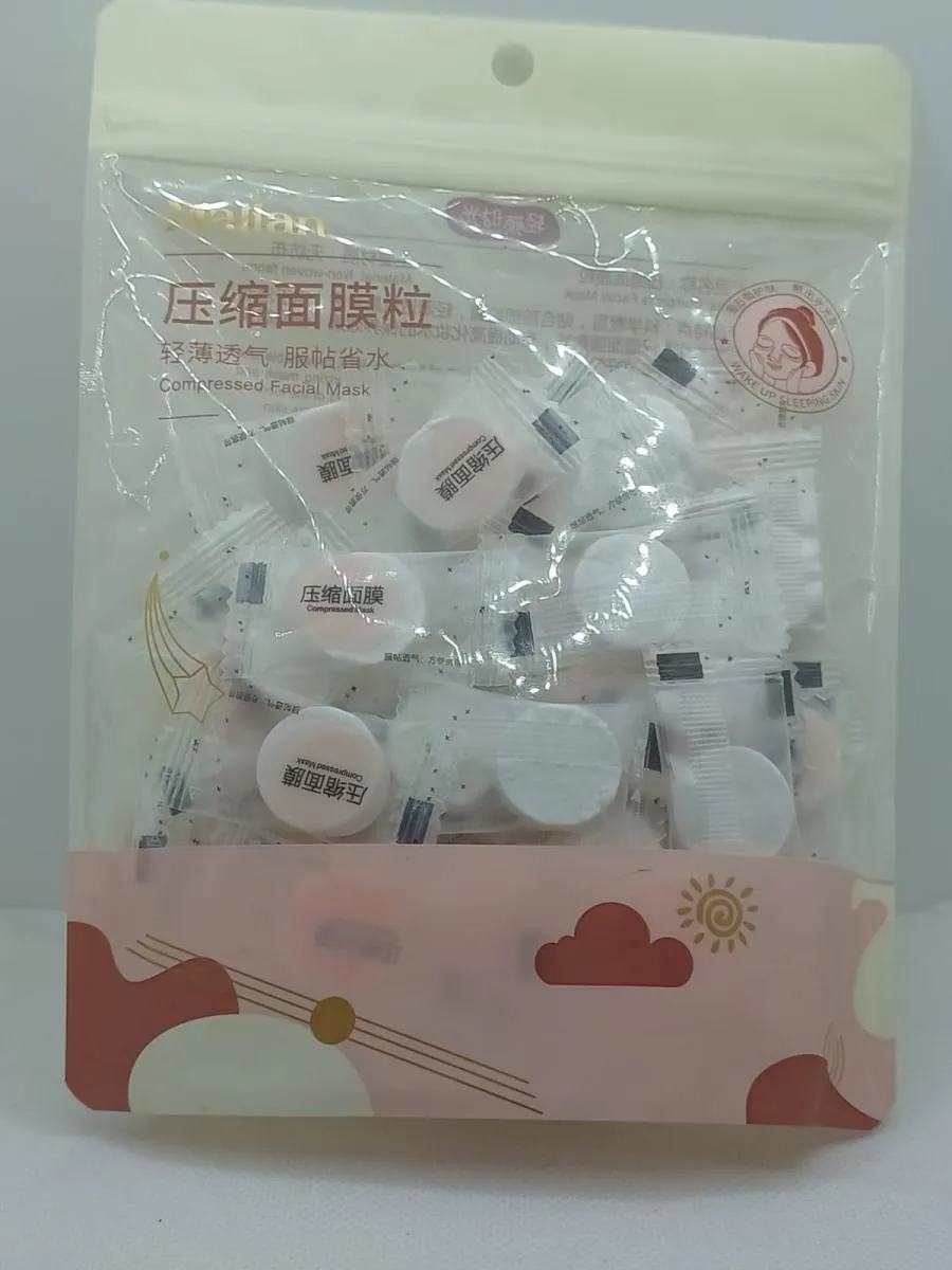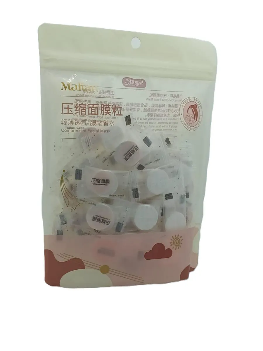 - O material da máscara facial comprimido é feito de tecido-não-tecido de algodão de alta qualidade, seguro para uso.