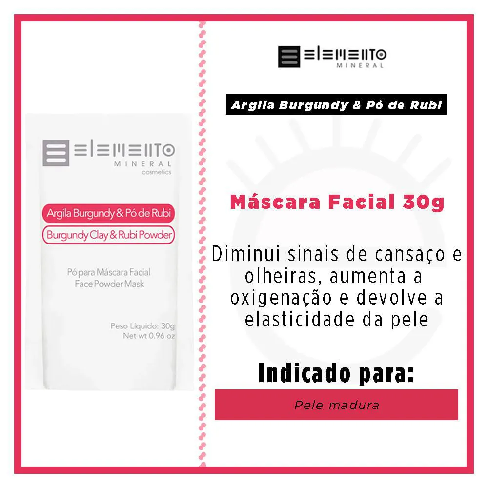 Máscara Facial Elemento Mineral Argila Burgundy com Pó de Rubi 30G
