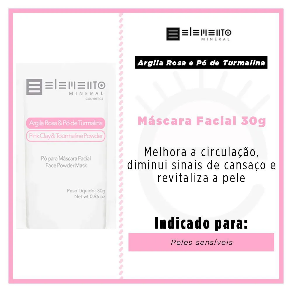 Máscara Facial Elemento Mineral Argila Rosa com Pó de Turmalina 30G