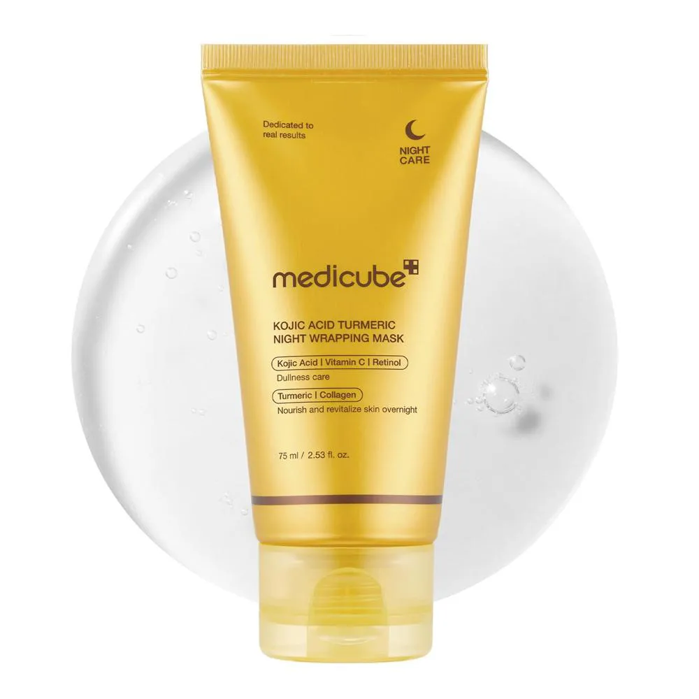 1. Medicube Kojic Acid Turmeric Night Wrapping Mask: máscara facial noturna de skincare coreano que combina ácido kójico e cúrcuma para uma rotina de cuidados com foco em luminosidade e tom visualmente mais uniforme.