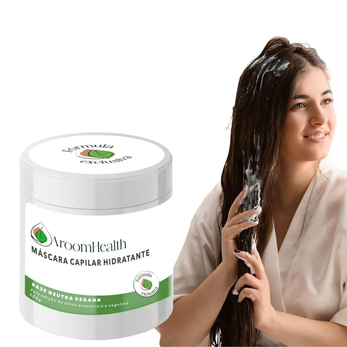 máscara hidratante base vegana -500g Fórmula exclusiva AroomHealth Máscara capilar base vegana fórmula exclusiva , perfeita para personalizar com óleos essenciais, óleos vegetais extratos vegetais , hidrolatos e vitaminas. Indicada para todos os tipos de cabelo, promove hidratação profunda e cuidado natural.