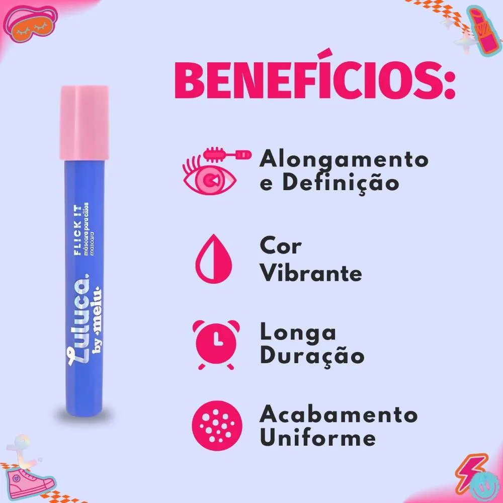 A Máscara para Cílios Luluca By Melu Flick It Ocean Eyes da MELU é a escolha perfeita para quem busca um olhar vibrante e cheio de personalidade. Esta máscara azul, inspirada no universo divertido da Luluca, une cor e performance em uma proposta ousada e expressiva, ideal para quem busca destacar o olhar com um toque artístico. Com pigmentos intensos, ela realça o olhar enquanto alonga e define cada fio com precisão, transformando seus cílios em uma declaração de estilo. Perfeita para jovens e adultos que amam experimentar e expressar sua individualidade através da maquiagem, esta máscara não só embeleza, mas também permite que você se destaque com confiança e alegria.Benefícios Principais
