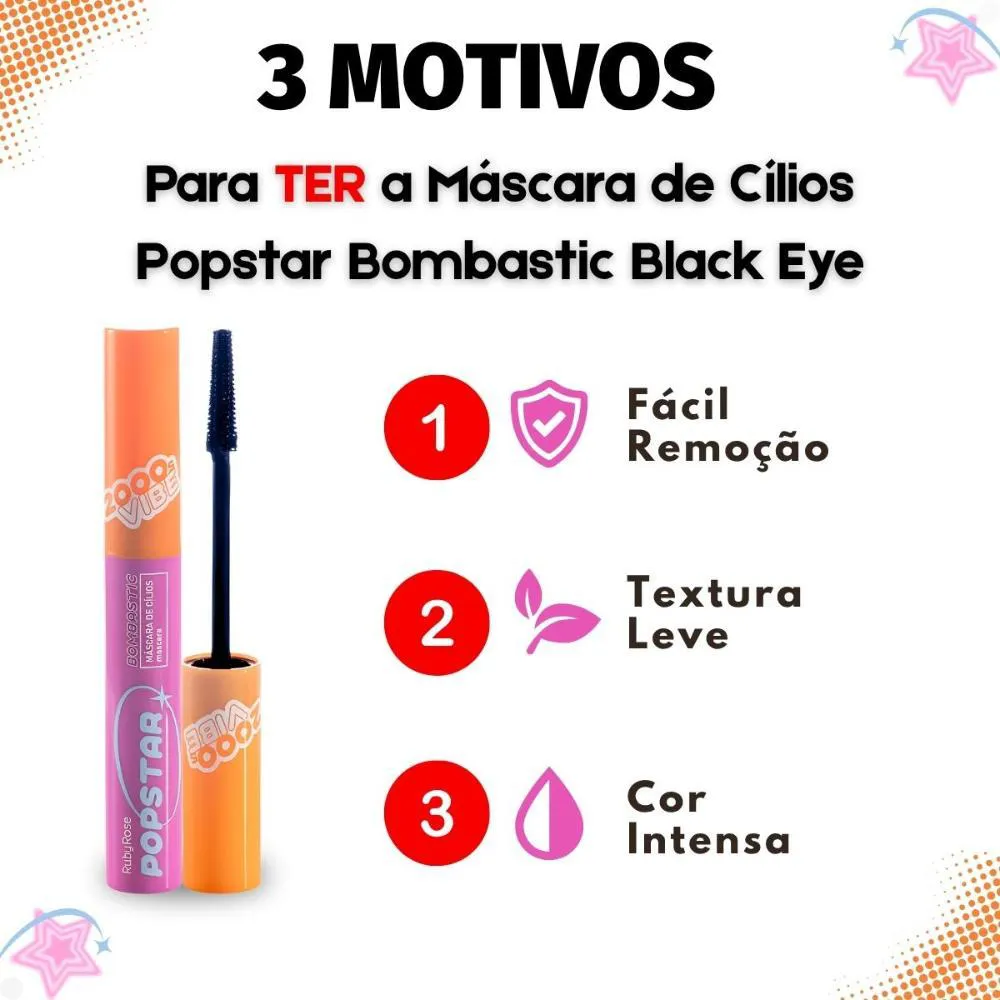 Descubra o poder da Máscara Para Cílios Ruby Rose Popstar Bombastic Black Eye Hb-e2004, a solução ideal para quem busca um olhar verdadeiramente impactante e sofisticado, resolvendo o problema de cílios sem volume e definição. Desenvolvida pela renomada marca RUBY ROSE, esta máscara oferece uma fórmula inovadora que valoriza seus cílios com leveza e precisão, garantindo um resultado expressivo e um acabamento elegante e duradouro. Transforme seu olhar e destaque-se em qualquer ocasião com cílios volumosos e definidos. Com a Máscara Bombastic Black Eye, seus cílios ganham um volume incrível e uma definição impecável, realçando a beleza natural dos seus olhos. Ideal para quem busca praticidade e resultados surpreendentes, esta máscara é perfeita para o dia a dia ou para eventos especiais.Benefícios Principais