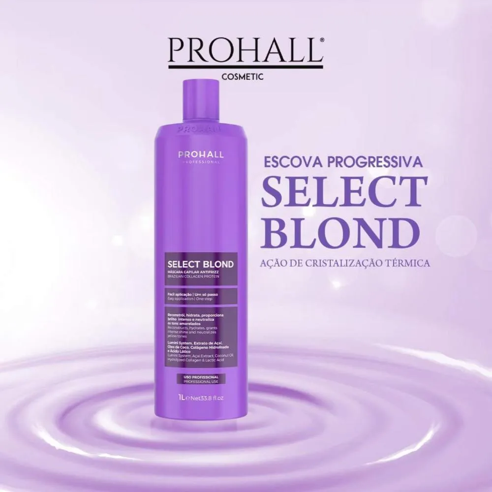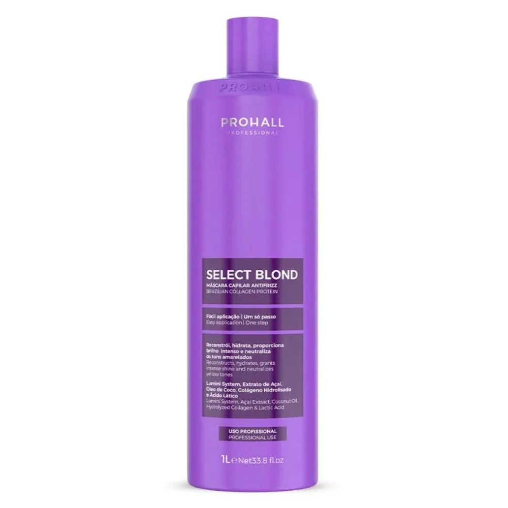 Tratamento profissional completo para cabelos loiros, coloridos e grisalhos, desenvolvido para alinhar os fios, reduzir frizz, controlar volume e uniformizar a cor, entregando um acabamento saudável, luminoso e disciplinado.Sua ação matizadora inteligente neutraliza tons amarelados indesejados, realça a cor e devolve a luminosidade natural dos fios, enquanto a fórmula avançada atua profundamente na fibra capilar, reparando danos causados por químicas, poluição e exposição aos raios UV.Indicada para cabelos loiros naturais, descoloridos, coloridos ou grisalhos, a máscara Select Blond é compatível com LOW POO, segura para fios quimicamente tratados e ideal tanto para uso profissional em salão quanto para tratamentos intensivos em casa, garantindo fios mais alinhados, matizados, macios e com brilho intenso desde a primeira aplicação.Ativos principais e tecnologia:Lumini System: reestrutura a fibra capilar, promove alinhamento, maciez e potencializa a absorção de nutrientes.Óleo de Coco: reduz frizz, controla fios rebeldes, combate o ressecamento e cria barreira protetora contra agressões externas.colágeno Hidrolisado: aumenta a elasticidade e resistência dos fios, promovendo reparação estrutural e movimento natural.Ácido Lático: restaura a fibra capilar, equilibra a hidratação e intensifica o brilho dos cabelos loiros e coloridos.