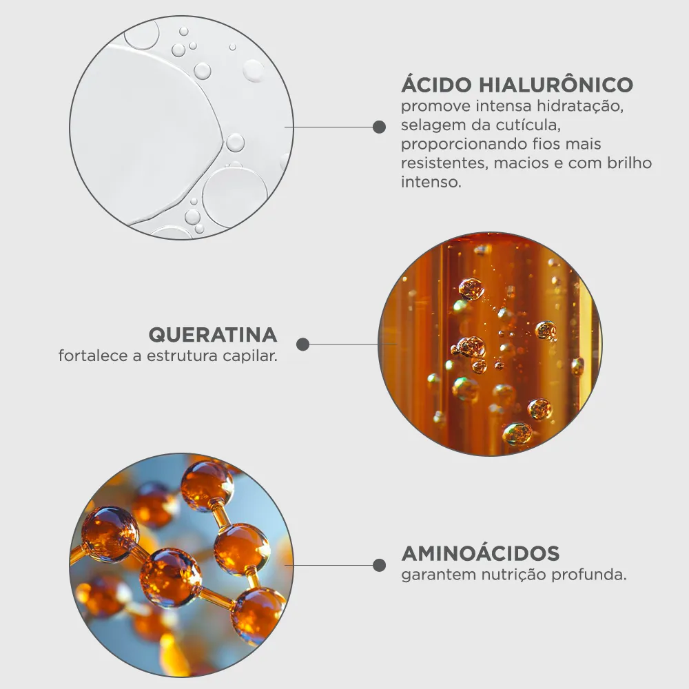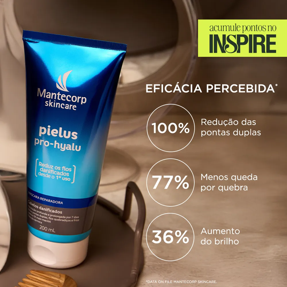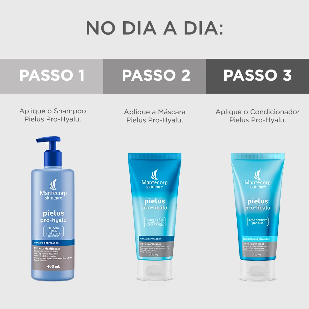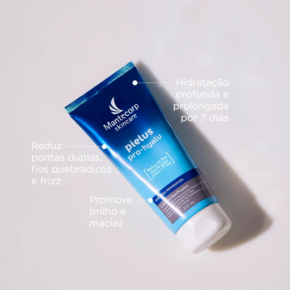 PIELUS PRO-HYALU máscara REPARADORA contém Ácido Hialurônico, Peptídeos e Aminoácidos que agem para recuperar e proteger os fios danificados por procedimentos químicos, agressões externas e ferramentas de calor, desde o primeiro uso.Pielus Pro-Hyalu Máscara Reparadora hidrata e nutre profundamente os fios, sem enxágue, devolvendo o movimento natural, brilho e maciez. Além disso, Pielus Pro-Hyalu Máscara Reparadora fortalece as propriedades naturais do cabelo e previne a oxidação, tornando os fios mais saudáveis e resistentes às agressões de forma duradoura.Para melhores resultados, pode ser utilizada após o Pielus Pro-Hyalu shampoo e condicionador. Dermatologicamente testado.