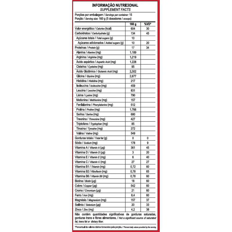 MASS TITANIUM 17500 ZERO LACTOSE é o hipercalórico completo ideal para atletas e praticantes de atividades físicas que buscam um suporte nutricional eficiente, sem lactose. Sua fórmula combina três fontes proteicas de alta biodisponibilidade e digestibilidade com duas fontes de carboidratos, enriquecida com vitaminas e minerais essenciais para a metabolização dos macronutrientes.