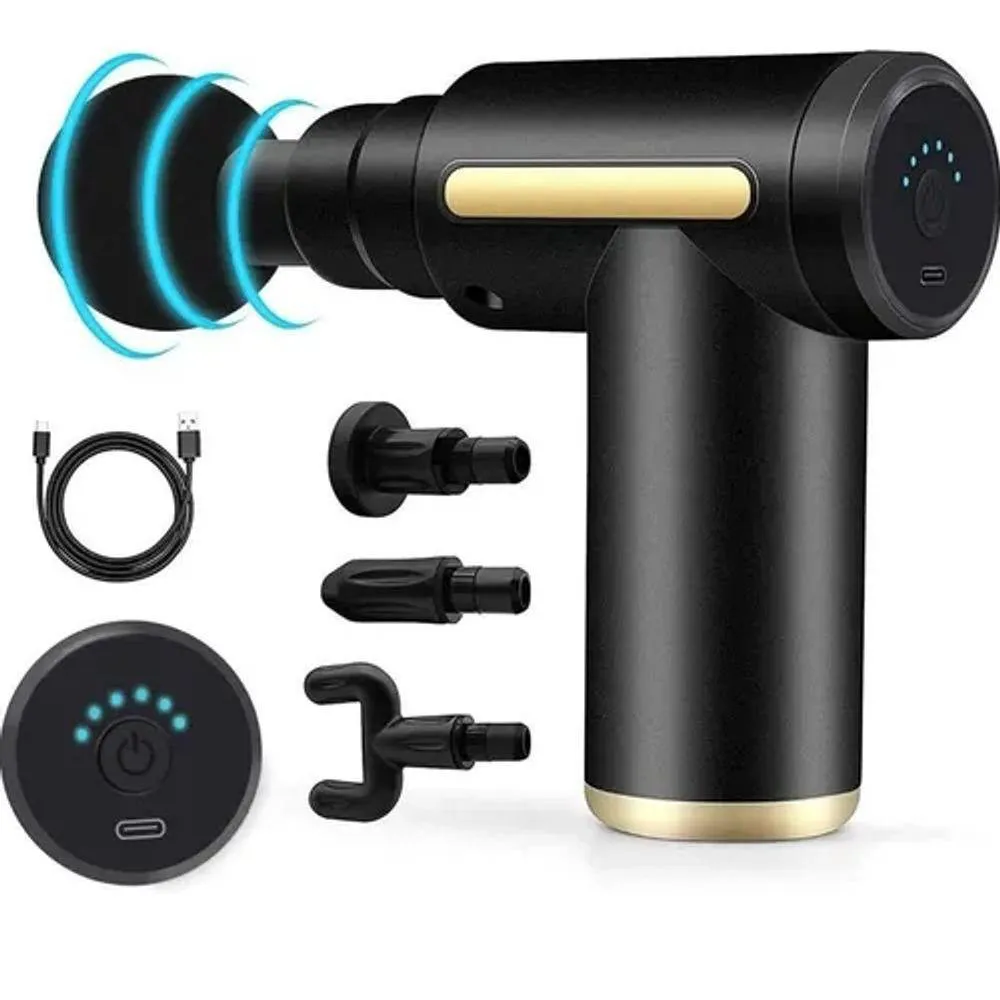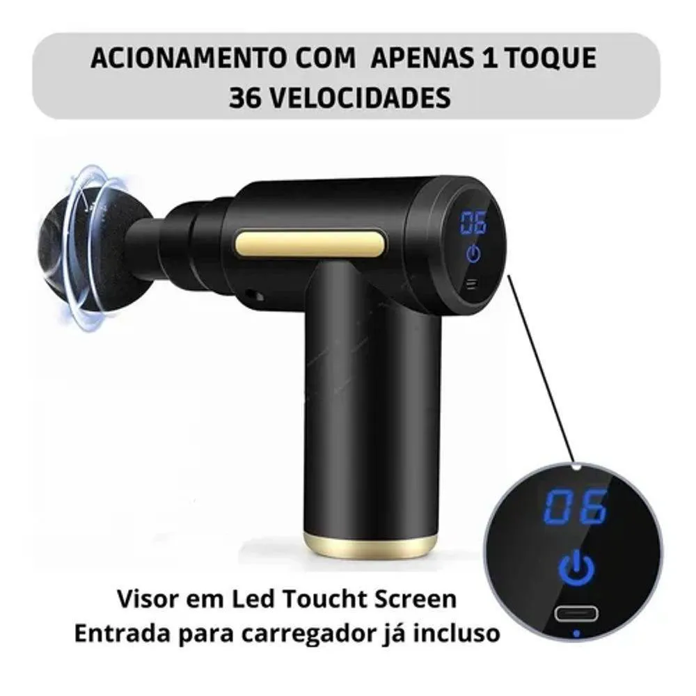 Possui cabeça vibratória que permite ajustar a velocidade, frequência e força com que é aplicada. A frequência se refere ao número de impactos por minuto; intensidade é a profundidade que as vibrações alcançam. O dispositivo funciona colocando-o em um músculo para permitir que vibre.