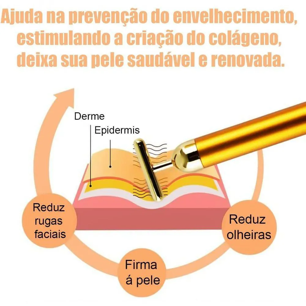 Massageador Facial Eletrico Antirugas Botox Lifting Vibração Energy Beauty Gold