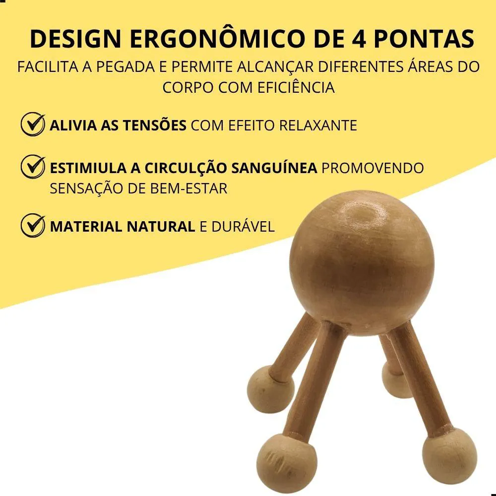 1 Aparelho Massageador Manual de Madeira com 4 Pontas