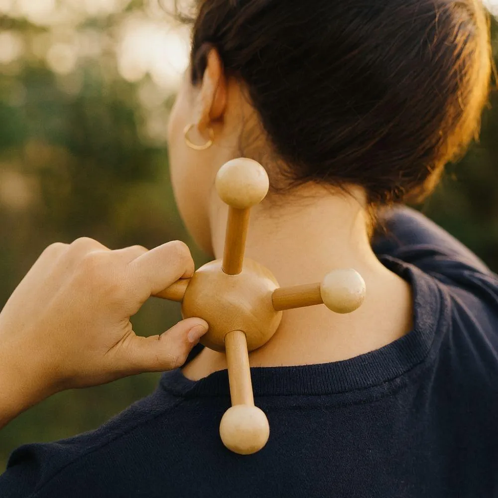 Massageador Muscular Corporal Manual de Madeira com 4 Pontas