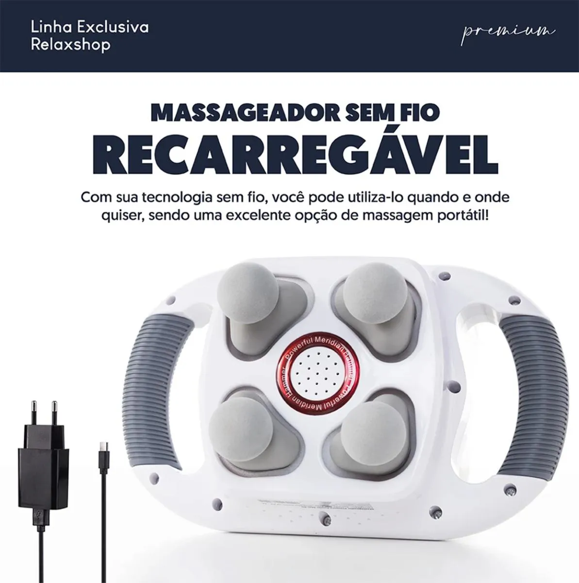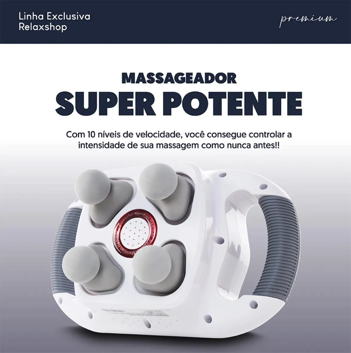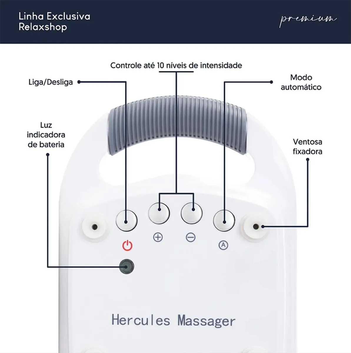 Massageador Profissional Power Relax HerculesA Relaxshop lançou o Massageador Profissional Power Relax, um dispositivo elétrico versátil para massagem intensa, fisioterapia e cuidados com a saúde. Com várias opções de intensidade, tamanho compacto e bateria recarregável, é ideal para uso portátil. Oferece 1 hora de uso contínuo sem fio, 4 bulbos de massagem e tecnologia inteligente para alívio eficaz de dores e tensões musculares em várias áreas do corpo, sendo indicado para profissionais de fisioterapia, estética e massagem. Indicações: