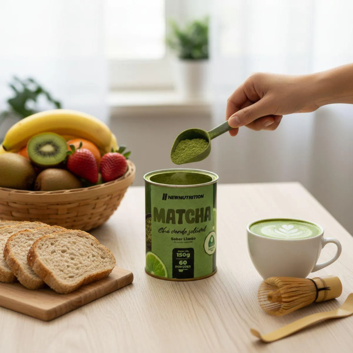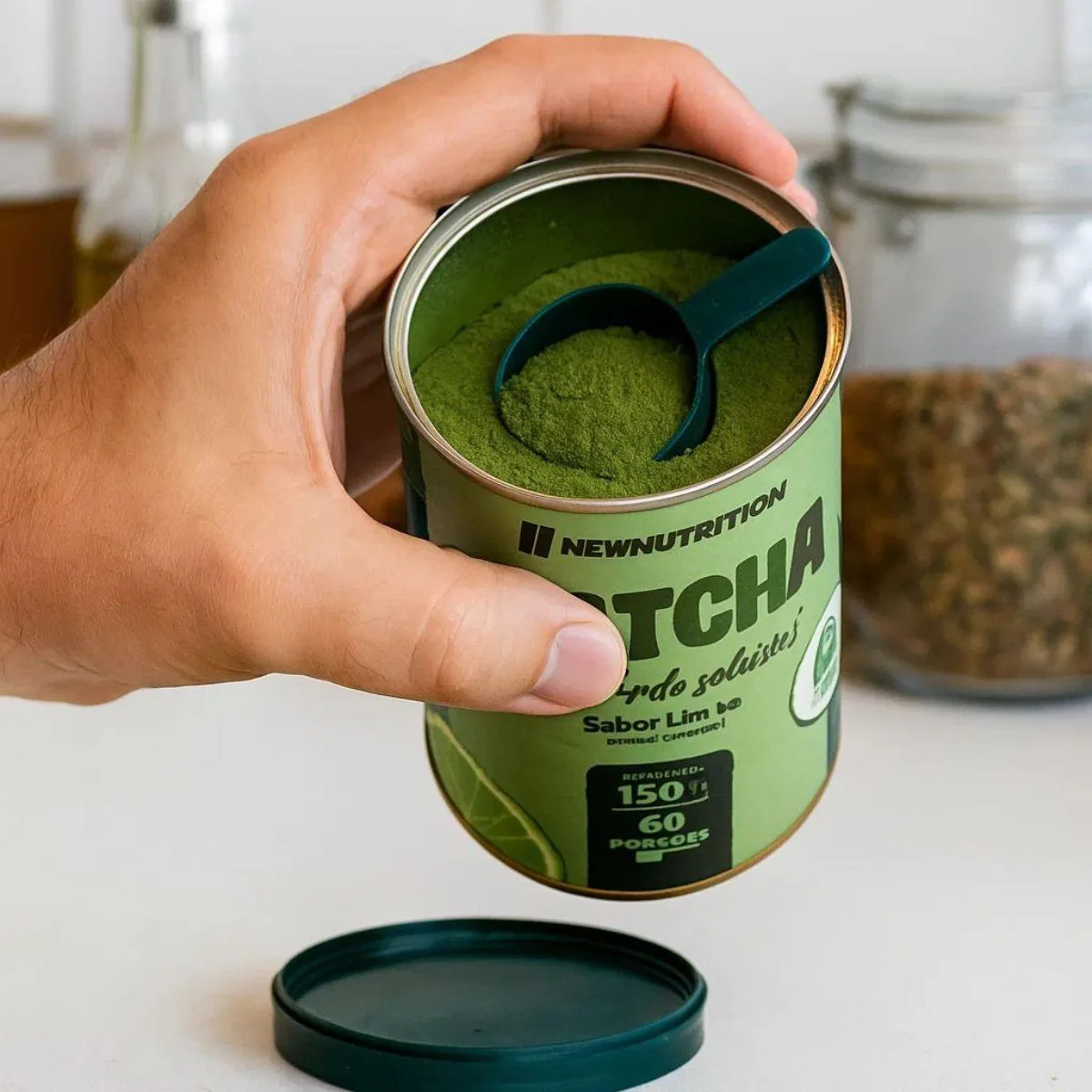 Sua composição matchá solúvel elaborado a partir de chá verde triturado e extratos naturais; livre de corantes e conservantes. e não inclui componentes de origem animal ou alergênicos comuns, favorecendo diferentes dietas.