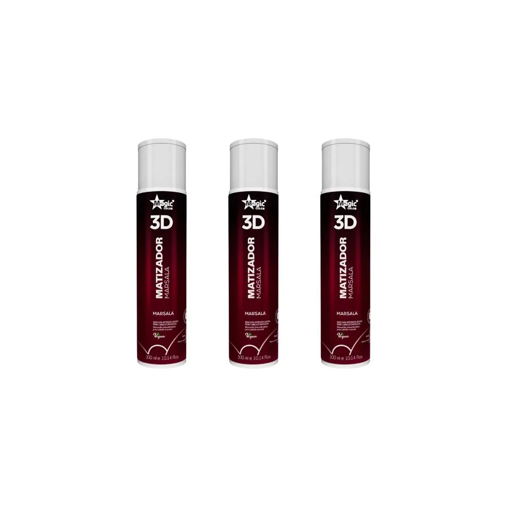 Esse kit contém: 3 Matizador Gloss Magic Color 300ml Marsala Descrição O Gloss Matizador 3D Marsala da Magic Color é uma máscara capilar pigmentada desenvolvida para intensificar e revitalizar a cor dos cabelos tingidos nos tons marsala e vermelho, que tendem a desbotar com o tempo. Sua fórmula contém aminoácidos essenciais, como cisteína, lisina, glicina, arginina e tirosina, que promovem a reestruturação, fortalecimento, resistência e nutrição dos fios. Além disso, o produto proporciona um efeito gloss devido à presença de glitters pigmentados, conferindo brilho intenso e aspecto saudável ao cabelo. Modo de Usar