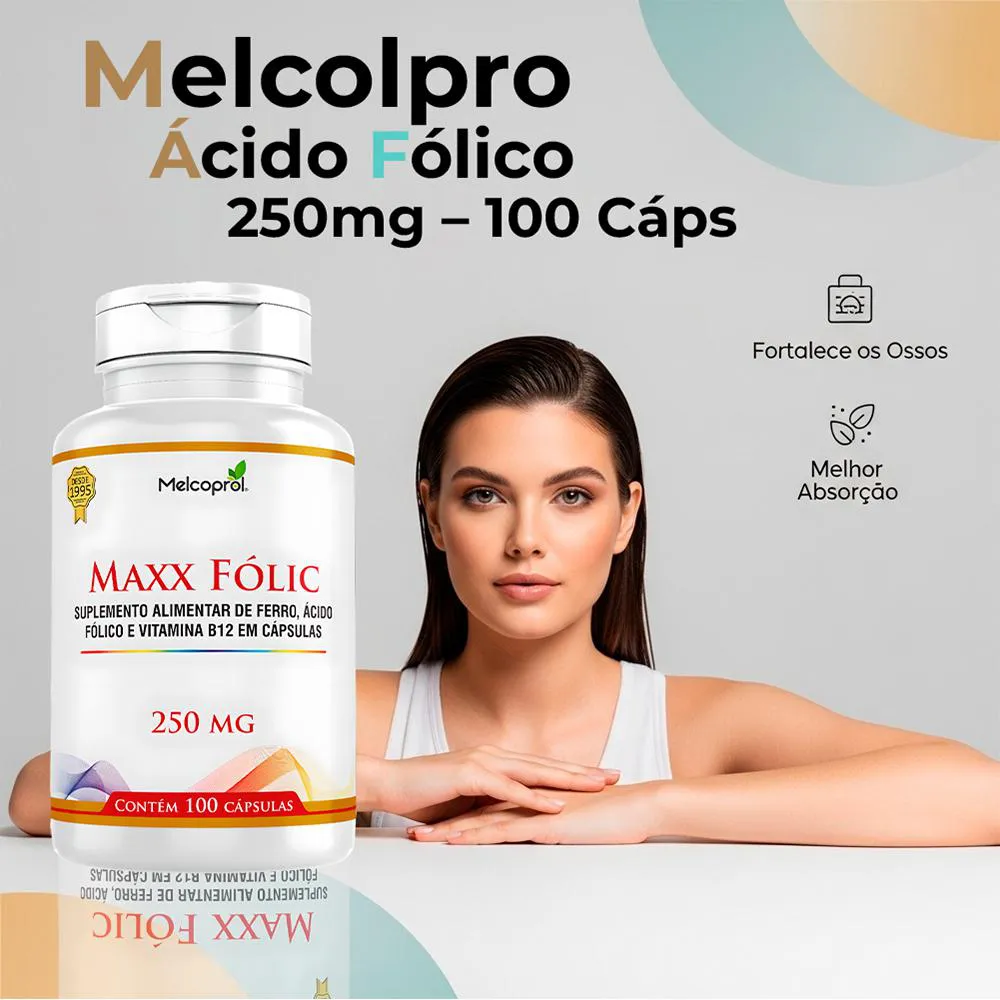 Maxx Folic 250mg Melcoprol com Ferro + Acido Fólico + B12