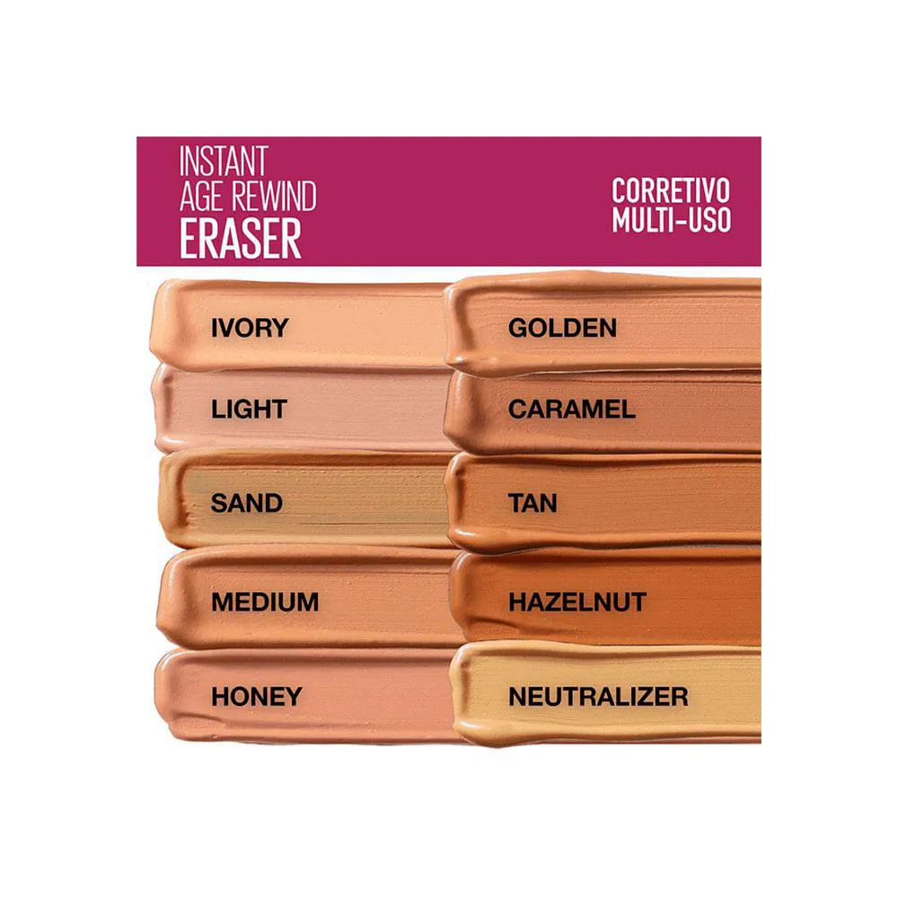 Contém:Maybelline Instant Age Rewind Eraser Dark Circles - Corretivo Líquido 5,9ml