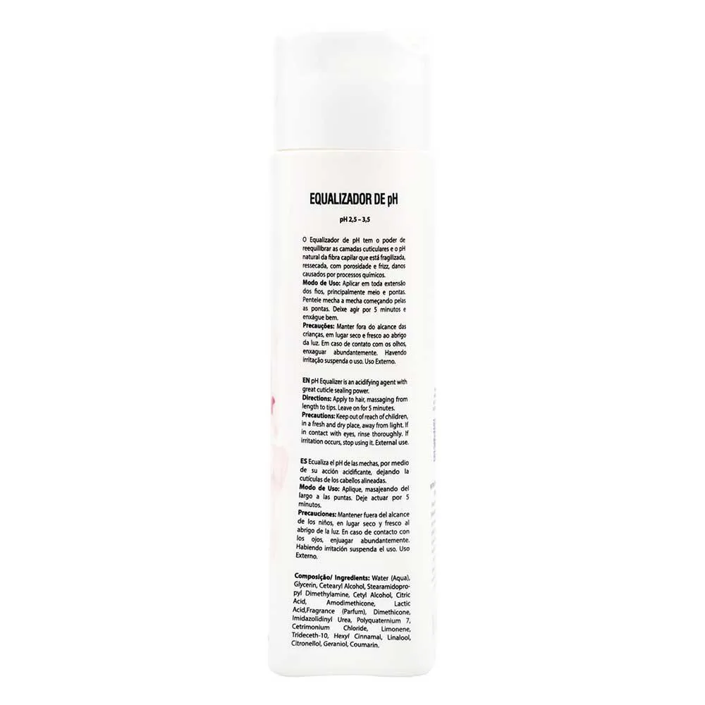 O Equalizador de pH tem o poder de reequilibrar as camadas cuticulares e o pH natural da fibra capilar que está fragilizada, ressecada, com porosidade e frizz, danos causados por processos químicos.