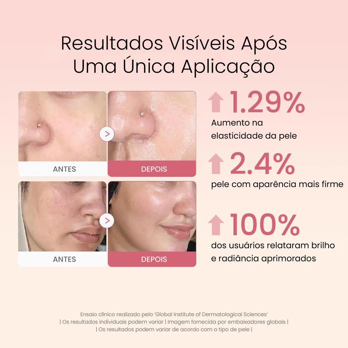 - Promove o efeito “Korean Glass Glow”, deixando a pele luminosa e uniforme.