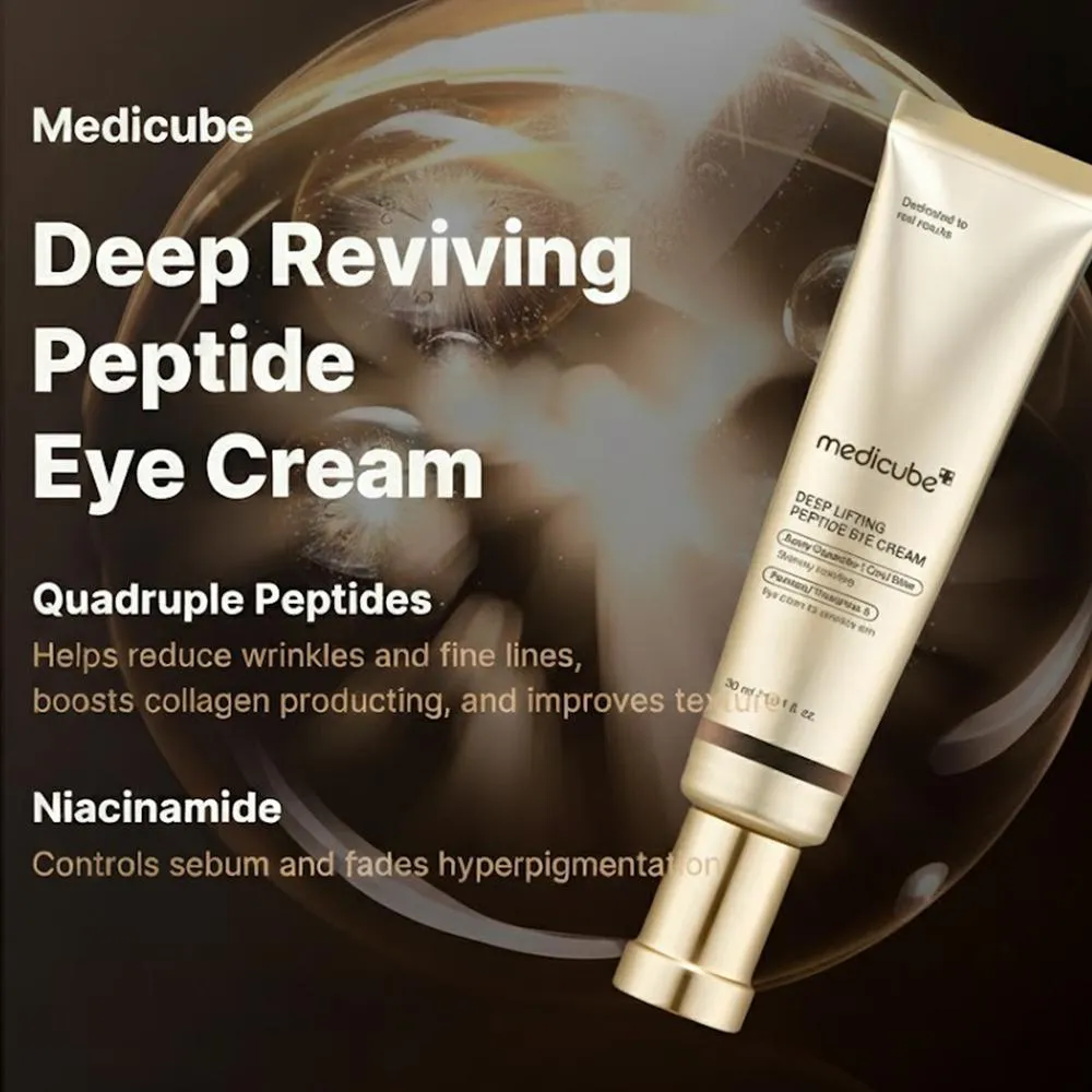 Medicube Deep Reviving Peptide Eye Sérum Hidratante Facial com Niacinamida e Esqualano para Olheiras, Bolsas, Linhas Finas e Firmeza da Pele 30ml