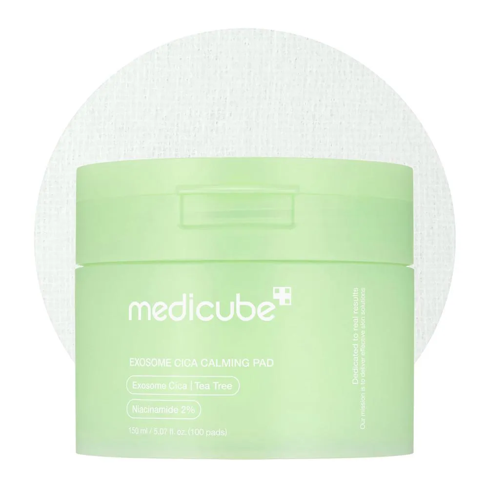 1. Medicube Exosome Cica Calming Pad é o toner pad k-beauty da marca Medicube para cuidados diários do rosto, com foco em pele sensível, mista e oleosa, oferecendo sensação de calma e hidratação leve após a limpeza.